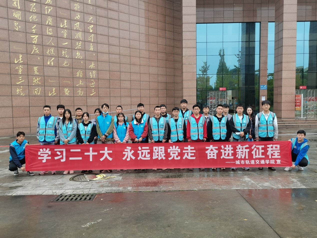 城市轨道交通学院团总支下属各团支部开展学习二十大报告主题团课。各团支部遵循读原文、学原著的要求,对二十大报告进行认真学习,领会过去五年和新时代十年的伟大变革,把握二十大主题,深刻理解新时代新征程中国共产党的使命任务,领会“三个务必”、五个“必由之路”以及中国式现代化的深刻内涵。最后在下沉音乐广场全院同学以校歌大合唱的方式唱出青年理想担当,发出时代强音。在新时代新征程中,将二十大精神学习贯彻始终,永远跟党走,努力拼搏奋进,以优异成绩向二十大献礼。