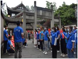 2021年5月15日管理系团总支学生会赴锦里开展“传承红色精神,讲好中国故事”社会实践活动,我系共组织了47名同学参与了此项活动。到达锦里后,首先参观了抗日英烈,率领川军带病奔赴抗日的第七战区司令长官,兼任集团军总司令刘湘墓地。随后,全体团员重温入团誓词、唱团,并歌共唱没有共产党就没有新中国”。同学们分6个小组对游客进行采访、宣传等纪念建党100周年的相关实践活动。以“建党100周年我想对祖国说”为主题,进行个人集体视频拍摄及拍照,邀请游客和同学们共同录制“建党100周年我想对祖国说”相关视频,并对游客进行了党史宣传,向大家普及党史知识,讲好中国故事。 此次活动的开展,展现了当代青年思想上的先进性,行为上的主动性,同学们通过三国文化古迹为平台,积极宣传弘扬红色文化和红色精神,让游客们进一步了解党的历史文化,提升文化自信。