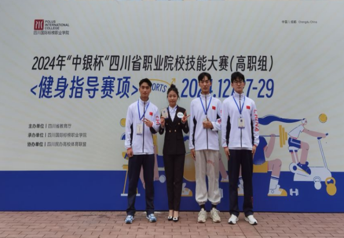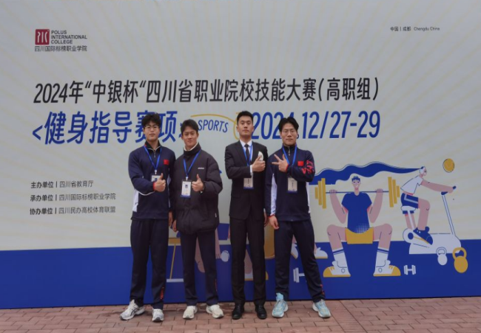 12月29日,由四川省教育厅主办的2024年“中银杯”四川省职业院校技能大赛(高职组)健身指导赛项在四川国际标榜职业学院落下帷幕。来自全省30所高校,51支代表队参加比赛,米兰官网首次选派的2支学生代表队分获二等奖和三等奖。 本项比赛内容包括健身运动处方设计与实施、体能竞赛和岗位知识与能力竞赛。在公共教学部体育教师杨刚和谭永胜的精心指导下,参赛队员认真学习相关理论知识、不断强化体能训练,赛场上沉着应战、团结协作,针对性设计并实施运动处方,最终凭借出色的表现赢得赞誉。