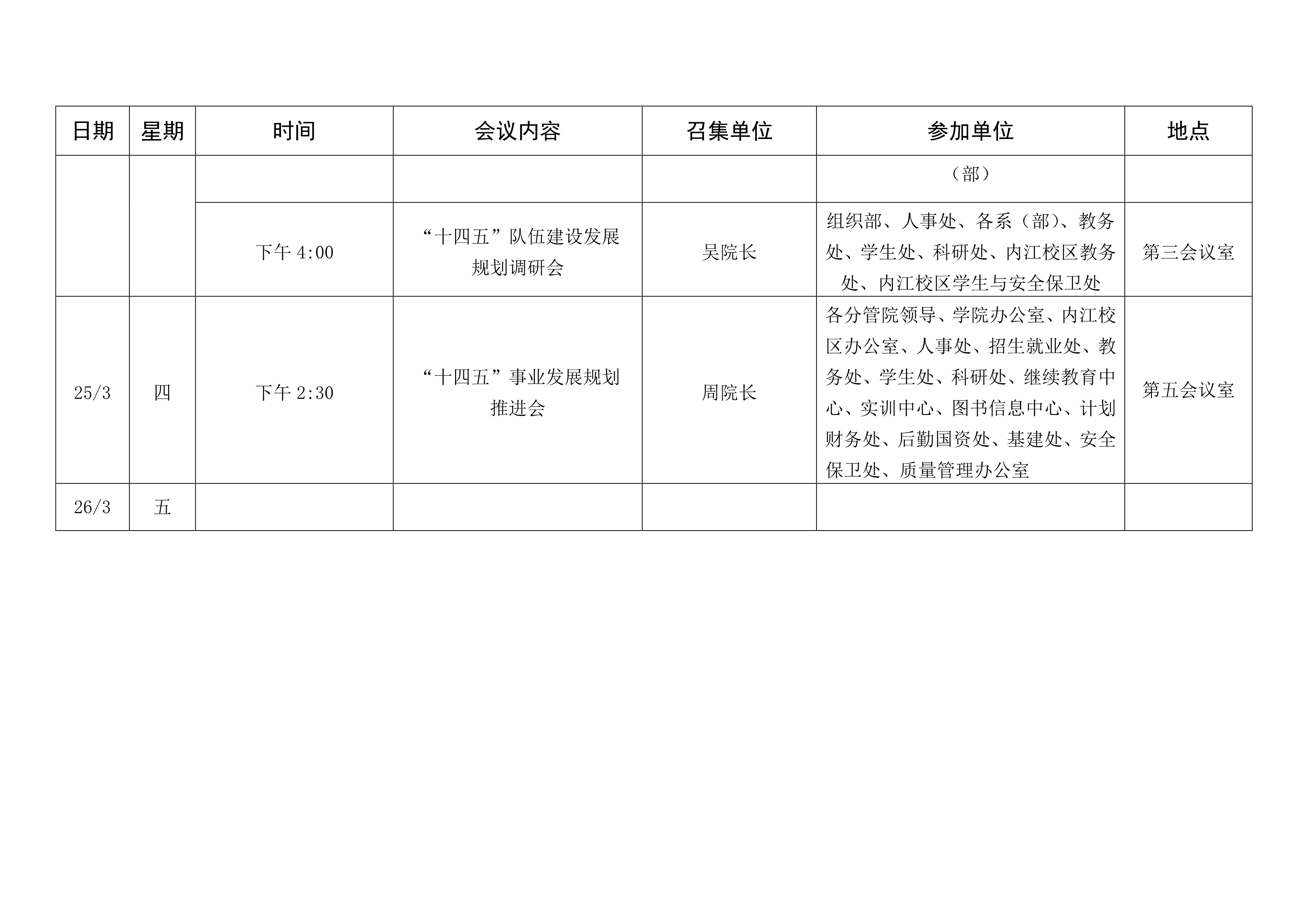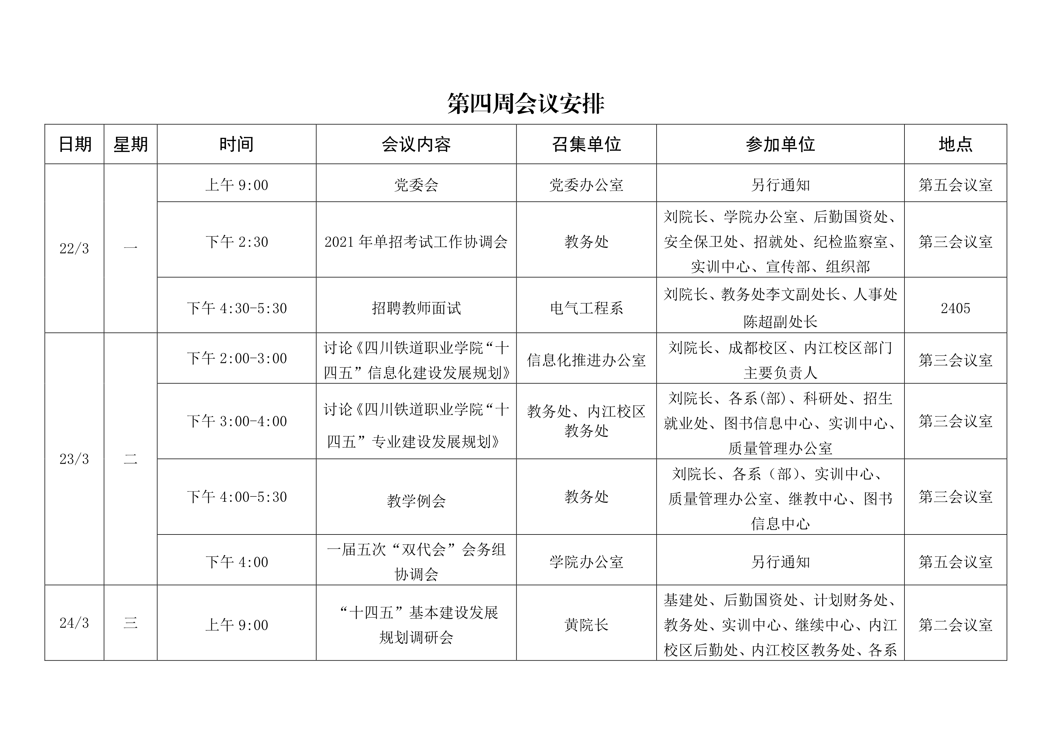 第四周会议安排