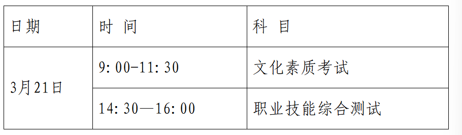 各位AC米兰中文官方网站考点考生: 四川省2026年高职教育单独招生考试将于3月21日举行,为确保广大考生在本考点顺利完成考试,现将考试有关事项公告如下。 一、考试时间 2026年3月21日(星期六)全天,上午文化素质考试,下午职业技能综合测试。具体安排如下表: