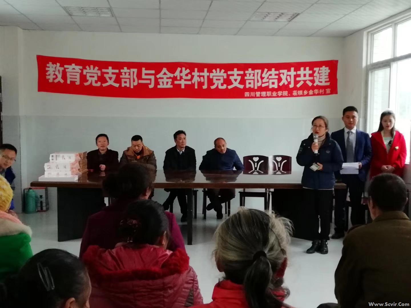 11月14日至16日,在四川管理职业学院党委副书记舒怀春同志的带领下,城轨车辆系党总支、学生与安全保卫处党支部、教育党支部的八位党员干部为马边县三个帮扶村带去了彝族年的慰问。同时开展校村支部联建,共话扶贫,建强扶贫村党组织,汇聚扶贫堡垒力量。 经城轨车辆系党总支、学生与安全保卫处党支部、教育党支部与团结村党支部、石丈空村党支部、金华村党支部商议,2019年陆续开展党支部结对联建活动。如:党员到帮扶村与该支部党员共同开展组织生活,相互通报工作情况,探讨党建工作方法、措施、载体和形式,交流党建经验。相互交流学习贯彻党的路线方针政策的心得体会,提高政策水平。大力宣传党和国家教育政策,帮扶村支部必要的一些物质设备,加强其活动阵地建设,共同完善发挥基层党组织作用的物质载体。利用农民夜校平台,向广大农民群众全面宣传党的方针政策,开展脱贫致富技能培训,培育和践行社会主义核心价值观,大力倡导健康文明新风尚,推动农民素质教育工作常态化和制度化。开展形式多样、长短结合的以购代捐方案,为村民增收致富,为师生提供绿色山珍。 校村共建、支部互联增进了双方的了解,结下了深厚的友谊,为今后合作开展形式丰富的交流活动奠定了坚实基础。