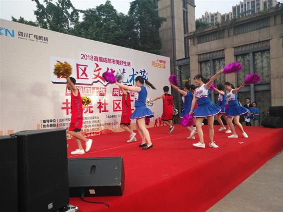 “辉煌40年,共筑新时代”,2018年6月2日,成都市首届美好生活社区文化艺术节在我院思政实践教学社区服务基地——郫都区书院社区举行,活动由四川广电网络成都分公司主办,书院社区协办。受社区党委邀请,我院青马社成员在思政部龙燕老师的带队下赴现场开展志愿服务工作。 青马社志愿者们根据主办方活动安排,14:00到达活动现场后,立刻投入到布置活动现场、设置服务摊点、摄影宣传等筹备工作当中,参演节目的同学立即换好演出服投入紧张的彩排中。演出活动18:30正式开始,志愿者们坚守自己的岗位,认真做好维持舞台、现场、摊点的秩序以及摄影等工作。孙于涵等3位同学演唱了《热曲串烧》,苟岚涵等9位同学表演了健美操《海草舞》。同学们的优质服务和精彩演出得到了主办方的高度认同和居民们的喝彩。社区党委书记高度赞扬我院学生的志愿服务工作,希望与青马社长期合作。 同学们从下午两点工作到晚上九点,没有任何抱怨,积极主动地协助主办方做好活动前的筹备工作、活动中的服务和演出工作、活动后的扫尾工作。他们纷纷表示,本次实践活动受益匪浅,不仅感受到新时代下社区的“个性化、品质化”的服务理念,更为能在社区工作中贡献一份自己的力量感到骄傲。此次活动彰显了我院青马社成员的青春风采,在奉献社会的实践中共筑和谐新时代。 集体合影