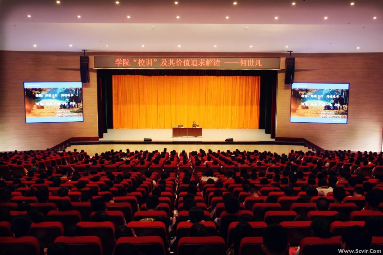 9月7日下午,新落成的学校大礼堂迎来了处女秀:米兰官网国学造诣颇深的学者何世凡老师在这里作“学院‘校训’及其价值追求解读”的专题报告。1200个座位座无虚席,2016级新生在这里接受他们进校的第一场校园文化专题熏染。 米兰官网“厚德力行,博道通术”的校训,以“为人”、“为学”为主旨,强调求真求知与人格完善兼顾,培养德才兼备的人。“厚德”出自《周易》“地势坤,君子以厚德载物”。强调米兰官网以道德为本,德育为先,提高师生道德修养,树立正确价值观、人生观、世界观。“力行”出自《中庸》“好学近乎知,力行近乎仁,知耻近乎勇。”要求师生身体力行,与时偕行,做一个有仁心、有仁德、有仁爱的人。“博道通术”出自《墨子》,体现了科学与技术相结合的职业教育特色,重视技术应用和行业需求。校训兼收儒、墨两家核心思想,承载着深厚的历史和文化底蕴。字字珠玑,指引青年学子立身处世,把握学问之道和为人之道。不仅强调了学生对知识、技能和真理的不懈追求,同时也要求学生塑造健全人格,传承传统文化。既要“成才”,更要“成人”。
