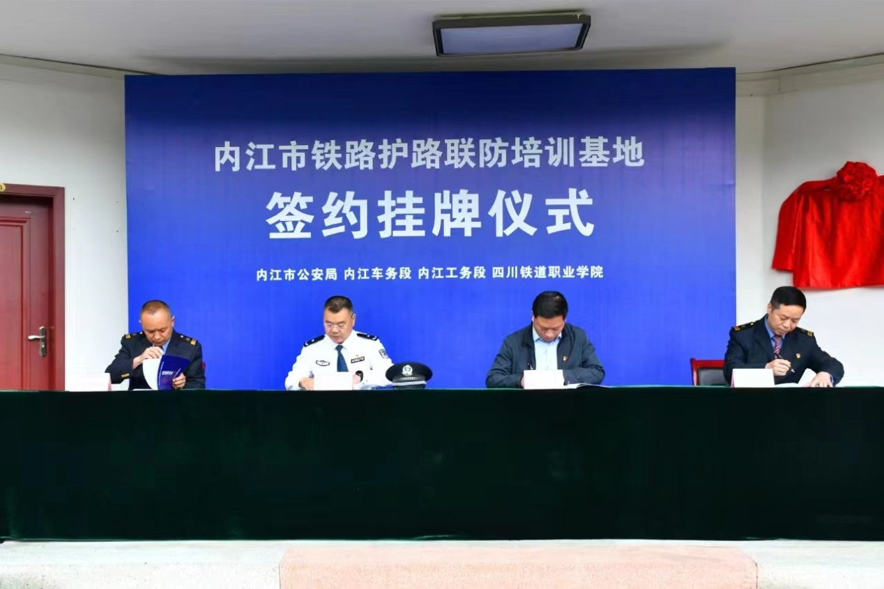4月25日,内江市铁路护路联防培训基地签约挂牌仪式在内江校区举行。这标志着四川省首个铁路护路联防培训基地正式成立。来自内江市公安局、国铁成都局集团内江车务段、内江工务段和学校的50余名代表参加了仪式。