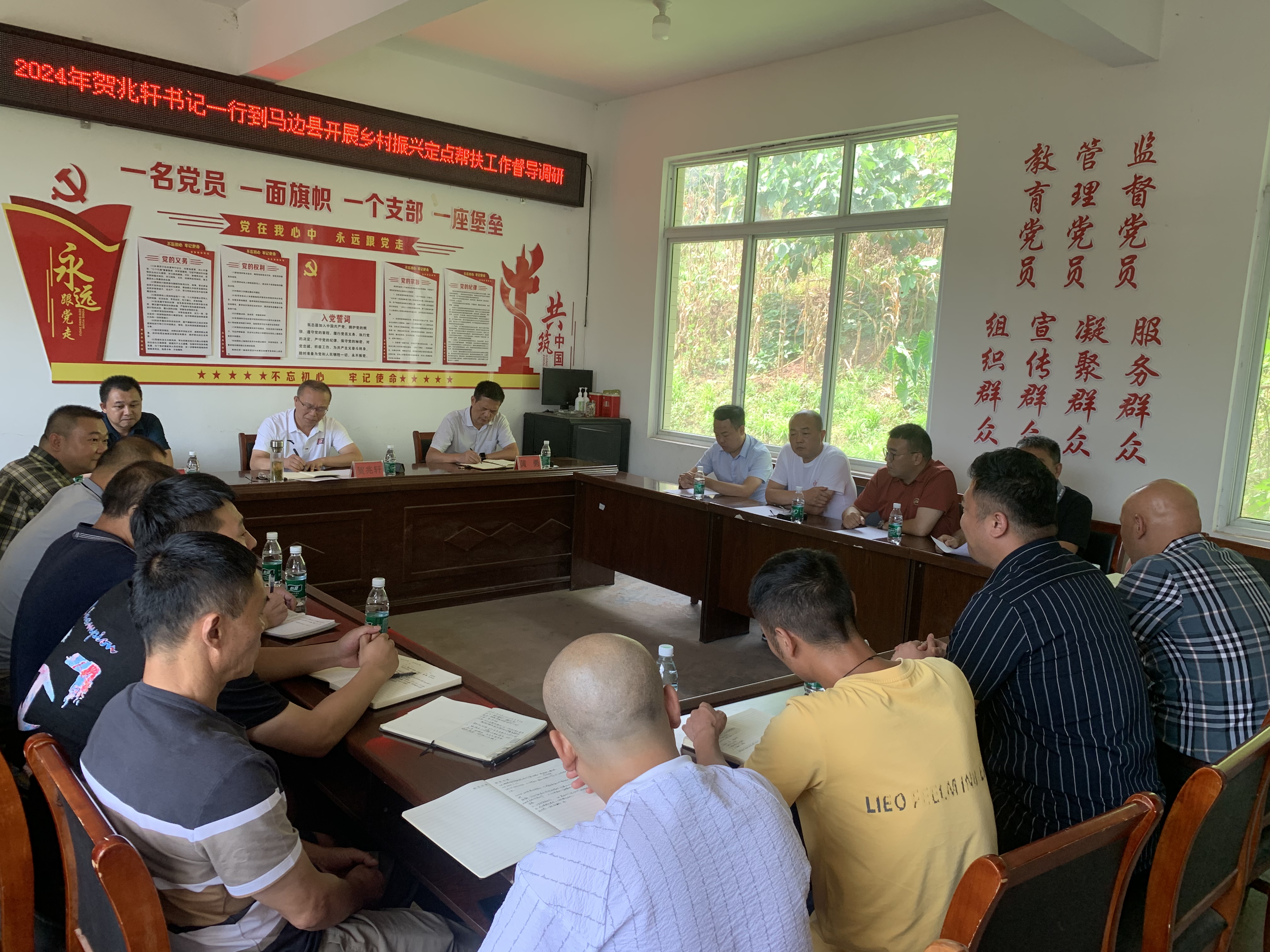 为进一步落实中央、省委及省委教育工委关于乡村振兴工作的最新要求,切实推动学校定点帮扶工作有力有序开展,7月23日-24日,党委书记贺兆轩亲自带队,将学校新增派的4名驻村干部送至马边县定点帮扶村,并开展工作调研。副校长黄勇、党委组织部负责同志,马边县委组织部、相关乡镇负责同志陪同调研。 7月23日,贺兆轩一行首先慰问了民主镇玛瑙村驻村干部,并与马边县委组织部、民主镇相关领导、村“两委”成员及米兰官网选派到马边县的全体驻村干部进行了深入交流。会上,贺兆轩先后听取了学校派驻玛瑙村帮扶干部的工作汇报及马边县、民主镇相关同志的发言。贺兆轩强调,驻村工作队是乡村振兴的重要力量,要切实提高政治站位,增强责任感和使命感,以扎实的作风和务实的态度投入到驻村帮扶工作中去。同时,他要求新增派的驻村干部要尽快熟悉村情民意,要放下身段当学生,向村干部学习、向老百姓学习,与他们心连心、情相连,深入了解群众需求,积极为群众办实事、解难题,以实际行动推动当地经济发展,赢得群众的信任。
