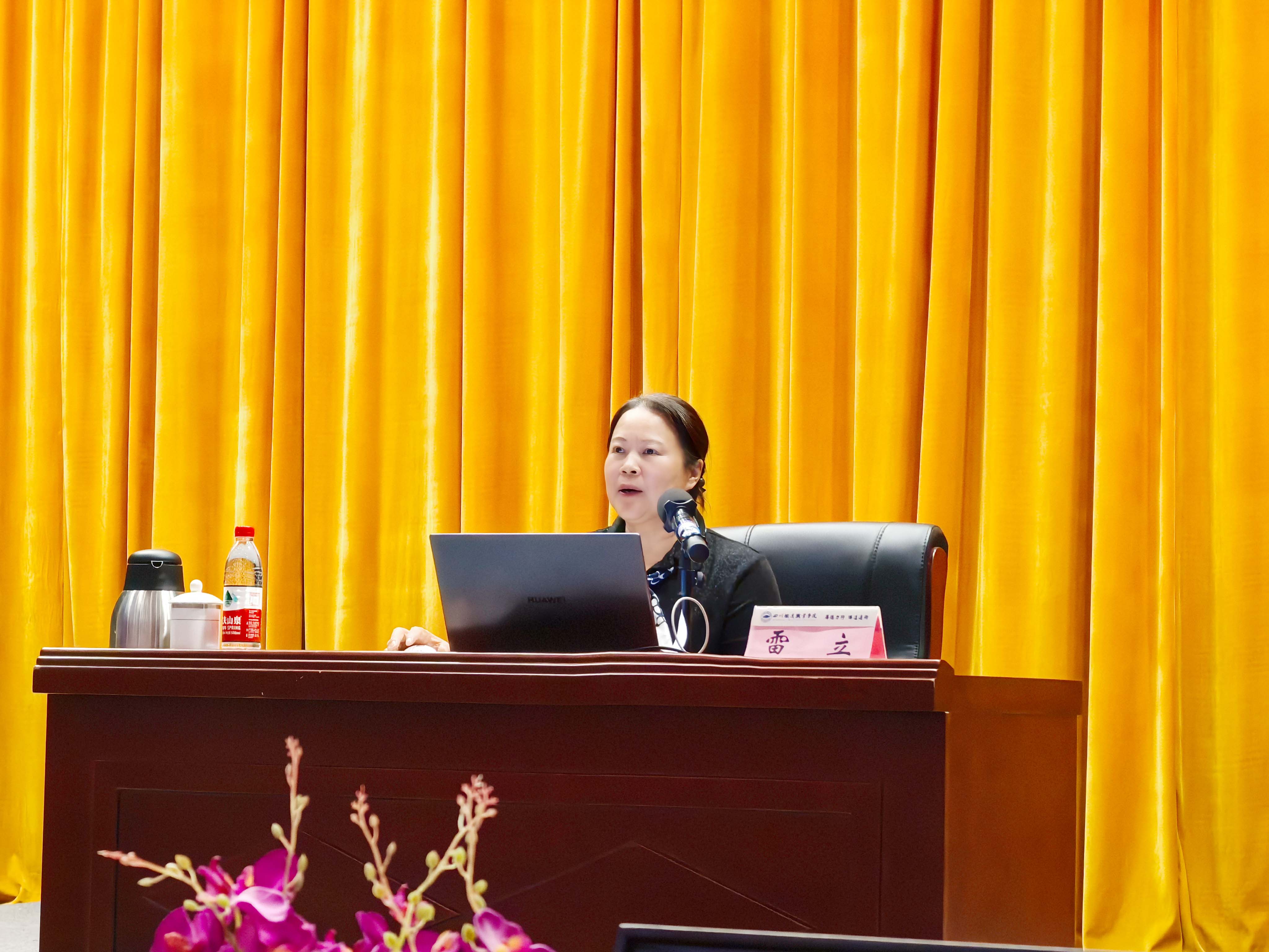 为深入学习贯彻党的二十届三中全会精神,落实教育部关于深入开展“劳模工匠进校园”行动要求,进一步发挥劳模工匠在立德树人中的精神感召和教育榜样作用,11月11日下午,学校第34期“川铁大讲堂”特邀全国五一劳动奖章获得者、全国五一巾帼标兵、全国劳动模范、国铁集团“铁路工匠”、成都局党校(职工培训基地)技术员雷立老师到校作“以人品铸精品 用精品铸安全”主题讲座。马克思主义学院全体教师、机关联合党支部全体党员、铁道工电学院教师代表、青年马克思主义者学习研究社全体成员、各专业学生代表共计1150余人参加讲座。讲座由马克思主义学院院长朱红主持。