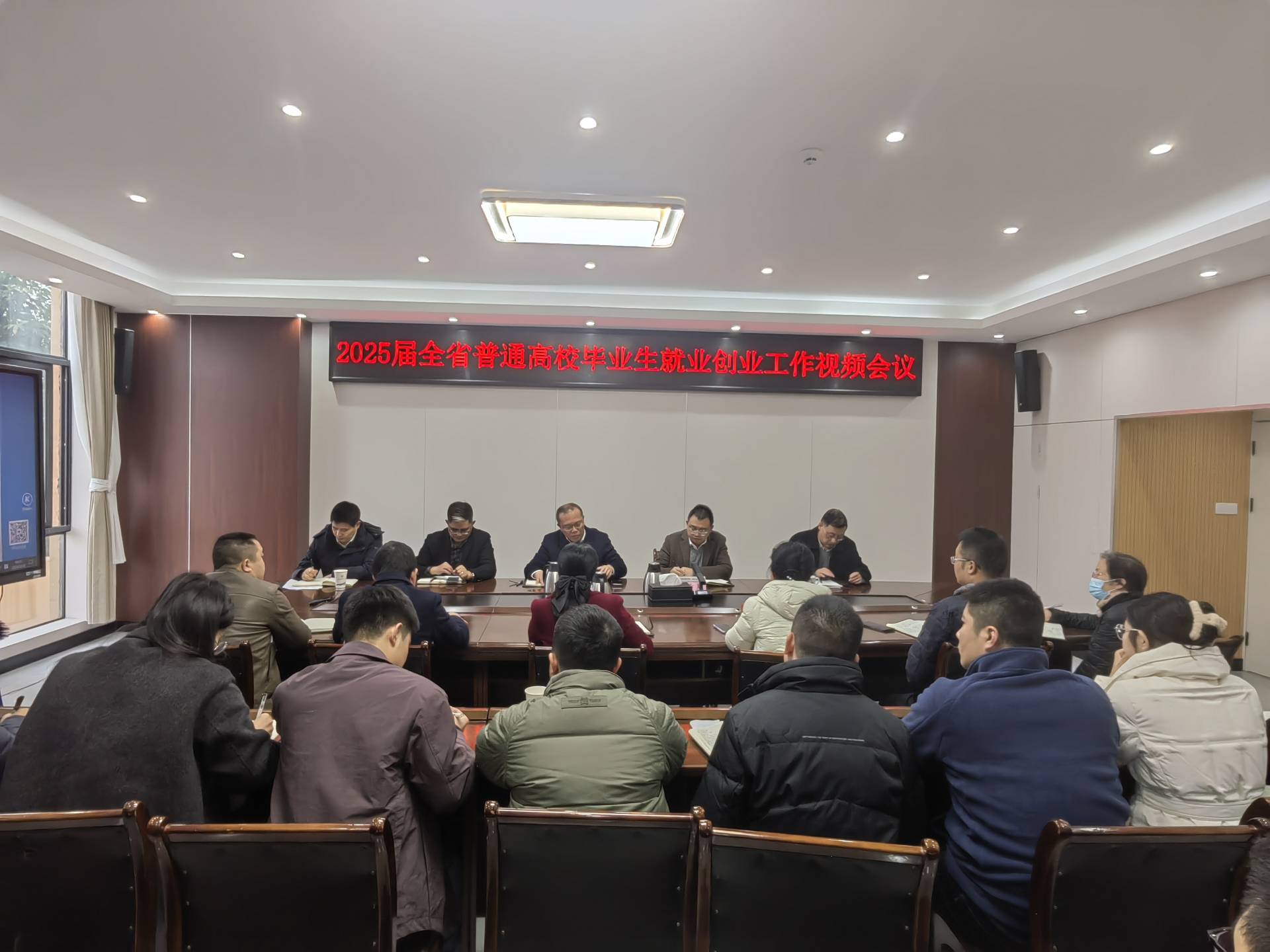 12月6日下午,教育厅、人力资源社会保障厅联合召开2025届全省普通高校毕业生就业创业工作视频会议,深入学习贯彻党的二十届三中全会和全国、全省教育大会精神,认真落实2025届全国普通高校毕业生就业创业工作会议部署,全面总结2024届全省高校毕业生就业工作,深入分析研判当前高校毕业生就业形势,对2025届全省高校毕业生就业创业工作进行部署。米兰官网在第三会议室设分会场,党委书记贺兆轩,副校长代学灵出席,各二级学院党政负责人、毕业班全体辅导员、就业辅导员,就业处全体工作人员参加会议。