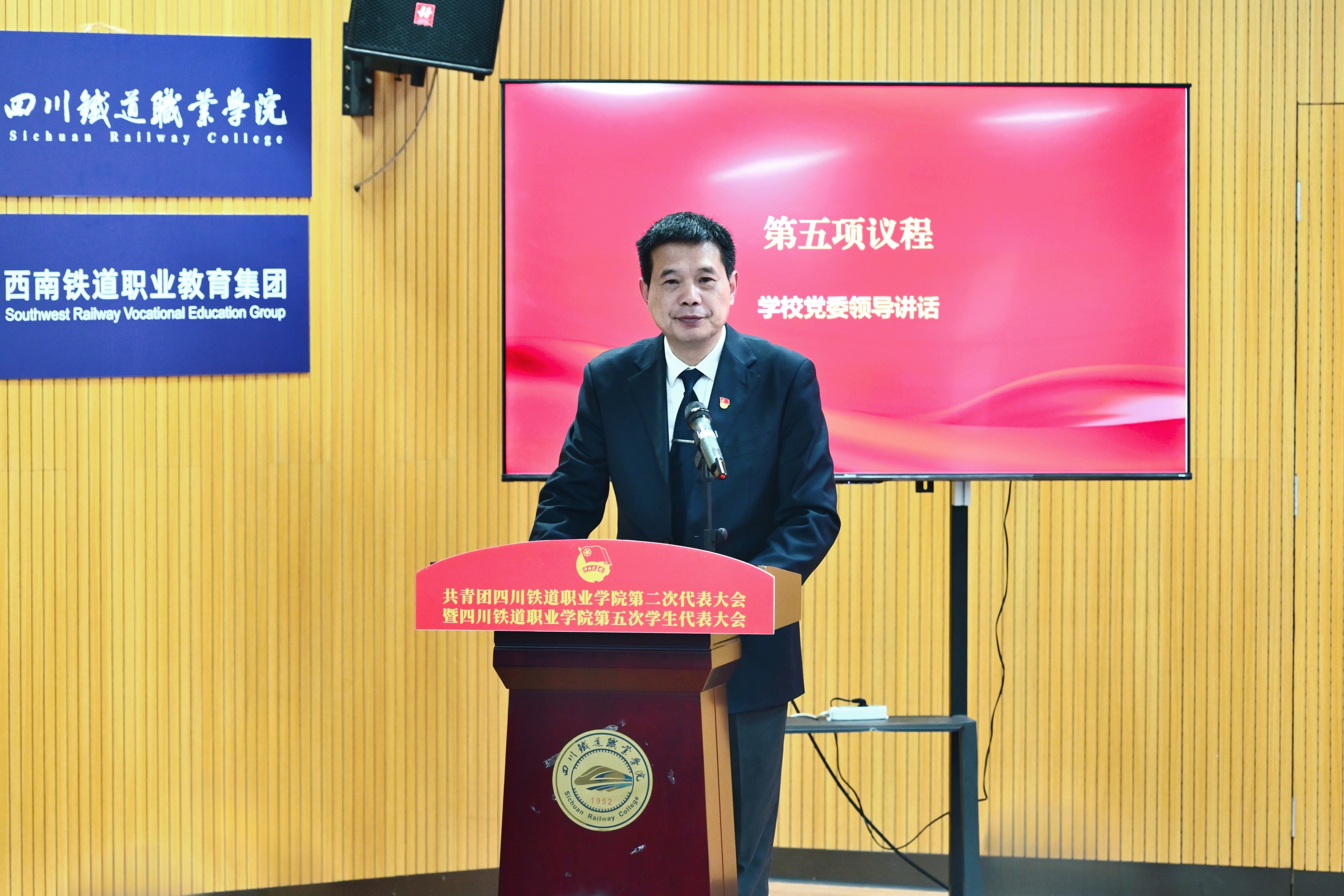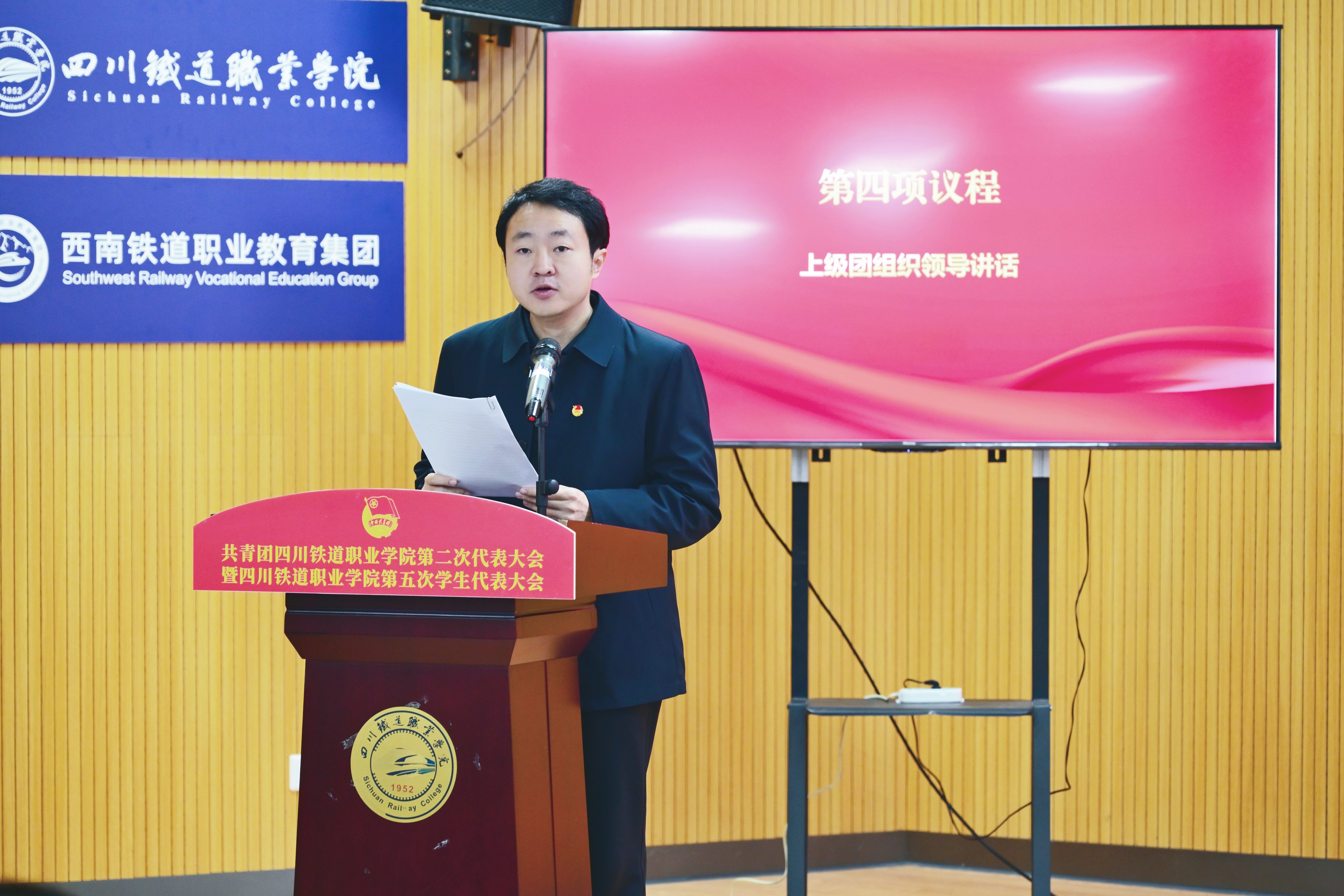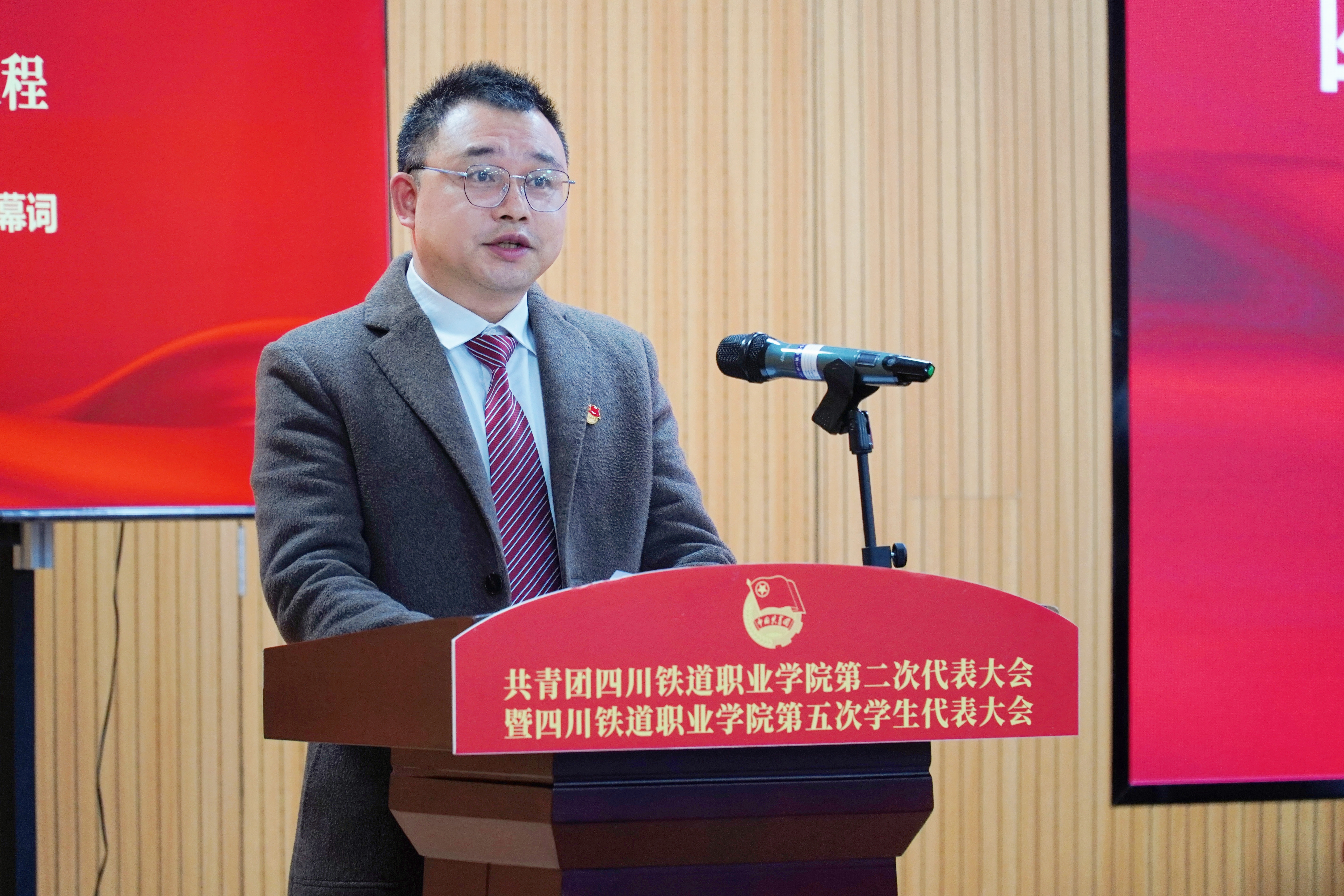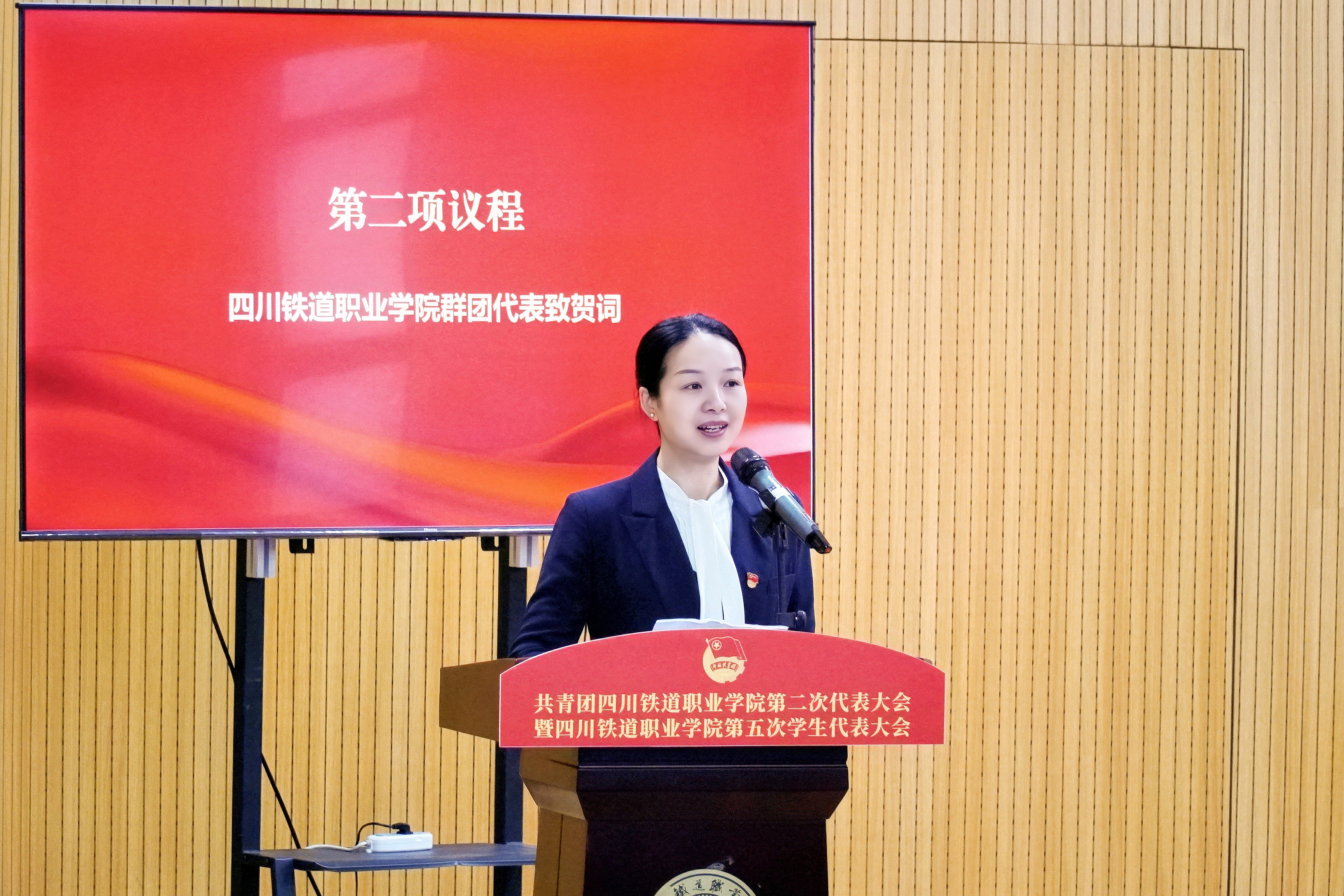 四川工商学院团委书记赵鹏代表兄弟高校团委向大会发来贺信。朱俐代表学校群团组织致贺词。