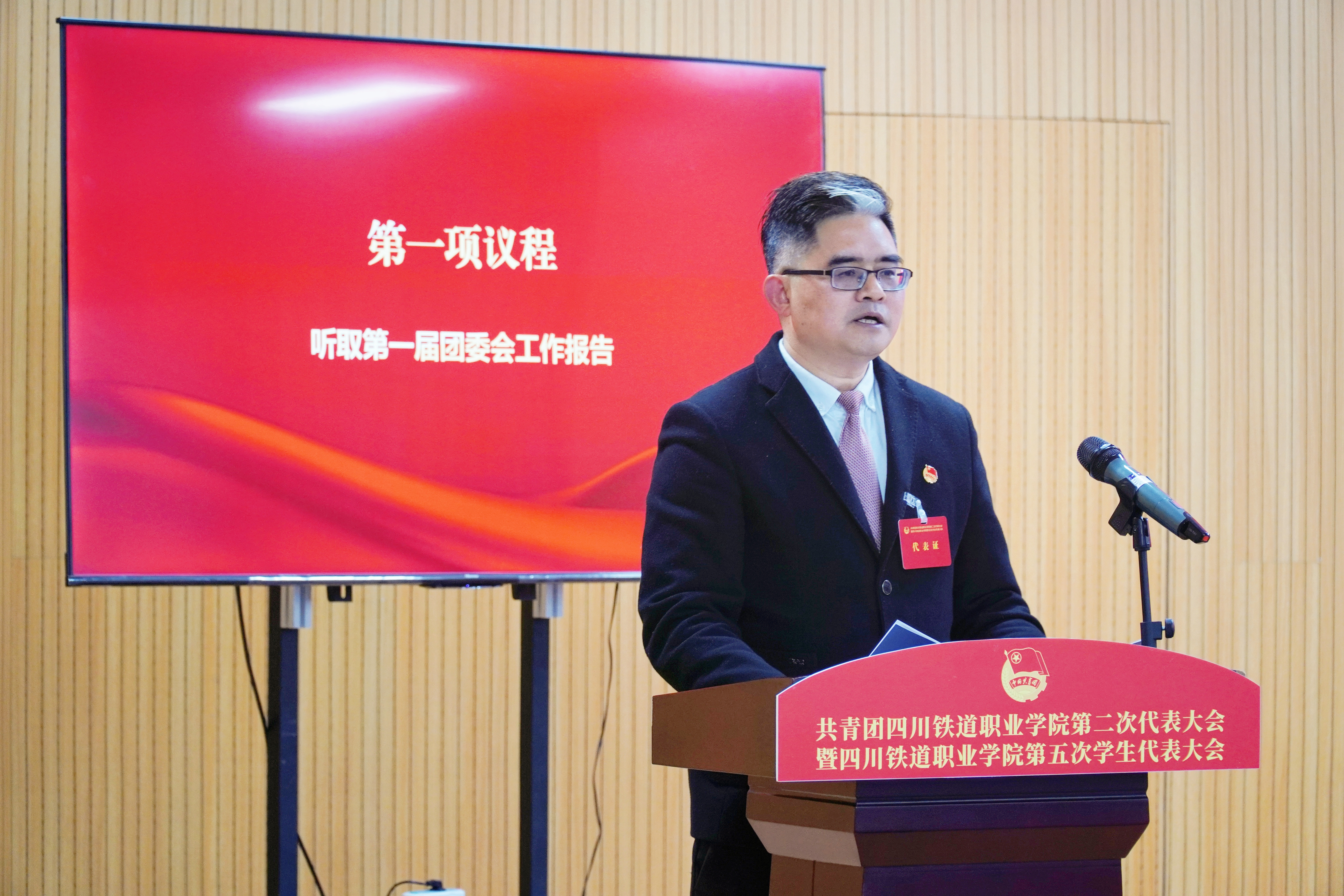 王文杰代表共青团AC米兰中文官方网站第一届委员会作题为《高举团旗跟党走 奋楫笃行向未来 奋力谱写新时代高质量发展的川铁职院团建新篇章》的报告。大会审议通过了《关于共青团AC米兰中文官方网站第一届团委会工作报告的决议》,正式选举产生了共青团AC米兰中文官方网站第二届委员会委员,王文杰当选第二届委员会书记。