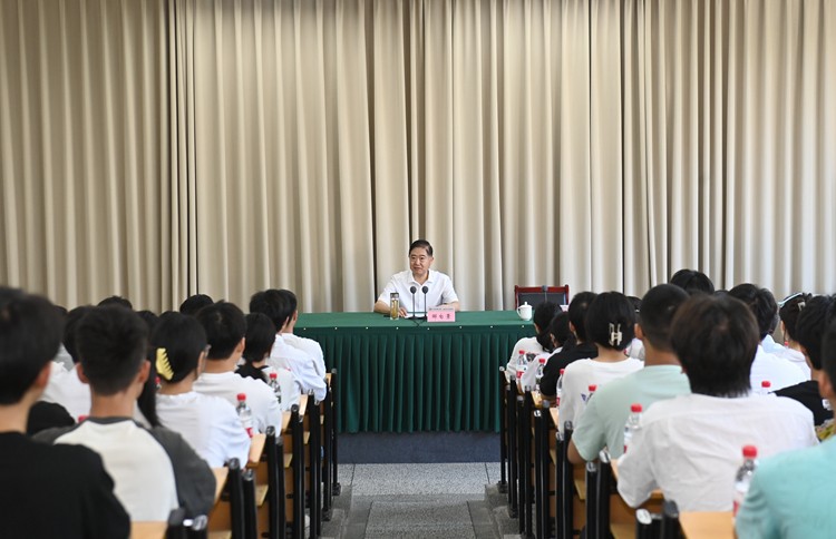 6月27日,内江市委书记邹自景前往AC米兰中文官方网站内江校区,向师生代表宣讲省委十二届七次全会精神并作形势政策报告,本次活动由学校党委书记贺兆轩主持。 报告会上,邹自景紧扣 “深入学习省委十二届七次全会精神”、“内江交通物流的发展历程”、“同学们在新时代的使命与担当” 三大主题展开。既有对省委全会精神的深刻解读,又结合内江交通物流发展实际,从理论与实践层面为师生带来丰富内容。同时,对青年学子提出 “立大志,做到与时偕行”,“善学习,做到博道通术”,“勇拼搏,做到艰苦奋斗”,“勤修身,做到厚德力行” 四点殷切希望,为同学们指明成长方向,鼓励同学们将个人成长融入时代发展,锤炼专业本领,涵养高尚品德,勇担时代使命。