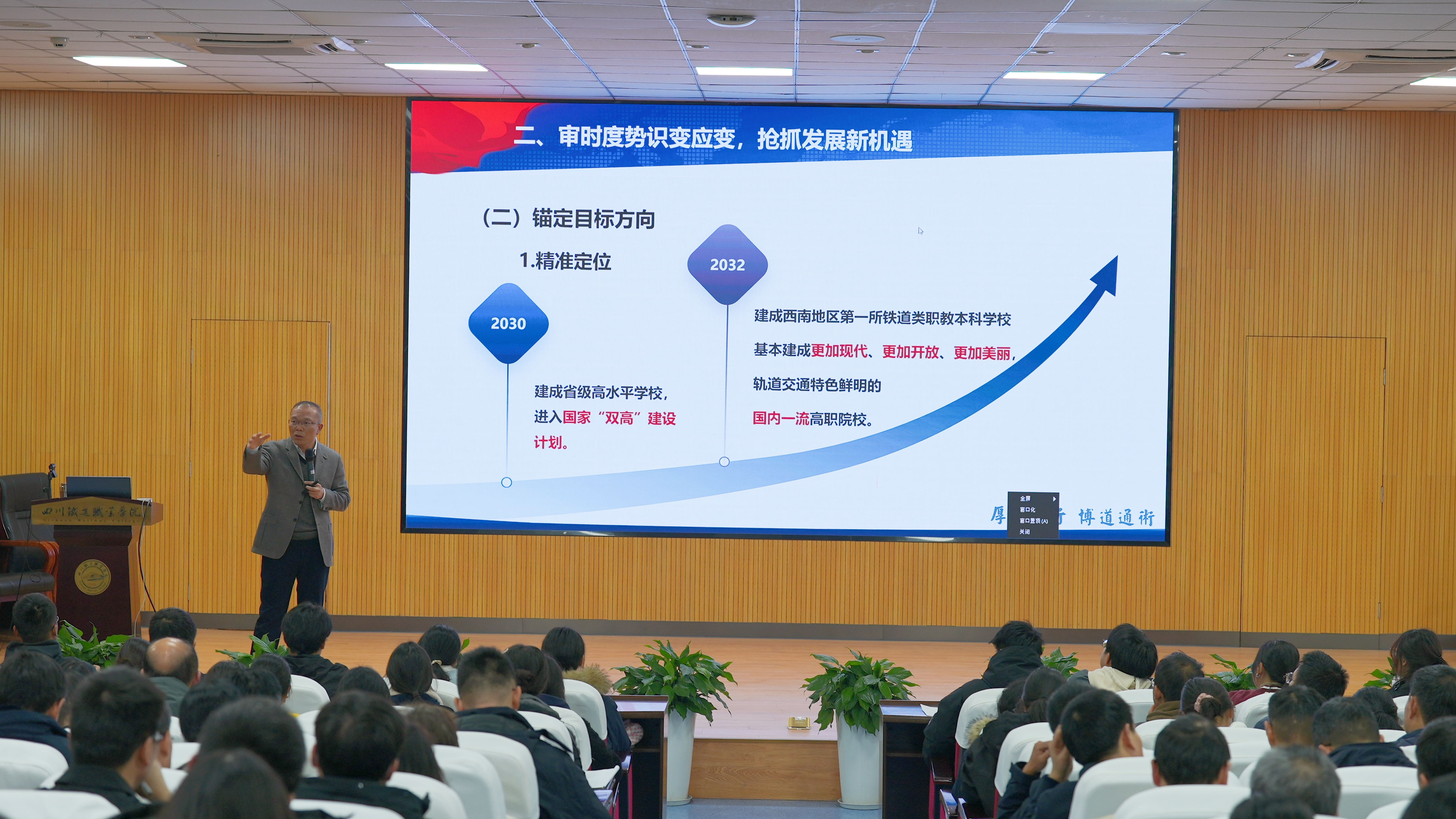 会前,与会人员深入研读了《人民日报》文章《从五年规划看“中国之治”》《在法治轨道上推进中国式现代化——习近平法治思想指引全面依法治国伟大实践》,以及《党的二十届四中全会〈建议〉学习辅导百问》相关章节,为高质量开展学习研讨夯实了思想基础。 会议指出,党的二十届四中全会审议通过的“十五五”规划《建议》,是新时代新征程推进中国式现代化的纲领性文件,具有重大历史意义、理论价值、实践指导意义和国际影响。全校干部师生要深学细悟,准确把握“六个坚持”基本原则和十二项战略任务,深刻领会“交通强国”战略的核心要义,切实增强服务国家重大战略的责任感与使命感。 当前,学校正处于新“双高计划”创建冲刺期与职教本科布局加速期叠加的关键阶段,既面临“前有标兵、后有追兵”的激烈竞争,也迎来轨道交通智能化、绿色化转型的重大机遇。会议强调,必须清醒认识在办学治校能力、人才培养模式、思政育人实效等方面存在的短板,主动识变、科学应变、积极求变。 会议要求,全体师生要坚定发展信心——以“中国之治”强信心、以“办学之进”增信心、以“师生之志”聚信心;要锚定“建成国内一流铁道类高职院校、冲刺职教本科”的战略目标,将个人成长融入国家发展大局;强化“抢位”意识,以“抢”的姿态抢抓政策机遇、抢先谋划布局、抢占发展高地;坚持错位发展,聚焦“专业技能+特色能力”复合型人才培养,打造不可替代的办学优势,避免同质化竞争。 会议号召,面对新形势新任务,全体干部师生要保持战略定力,做到原原本本学、联系实际学、不耻下问学、走出校园学;要办好自己的事,说了就干、马上就办,注重实效干、追求卓越干,切实把党中央决策部署转化为推动学校内涵式发展的实际行动,奋力书写轨道交通特色鲜明的国内一流高职院校建设新篇章,为服务中国式现代化贡献“川铁力量”。 全体校领导、副科级及以上干部、基层党支部书记及副书记、高层次人才、教学督导现场参会。内江校区管委会、成昆线吴场站开放型产教融合实践中心、马边彝族自治县驻村干部通过线上方式同步参加学习。 撰稿:周晓维 审稿:杨海涛 |