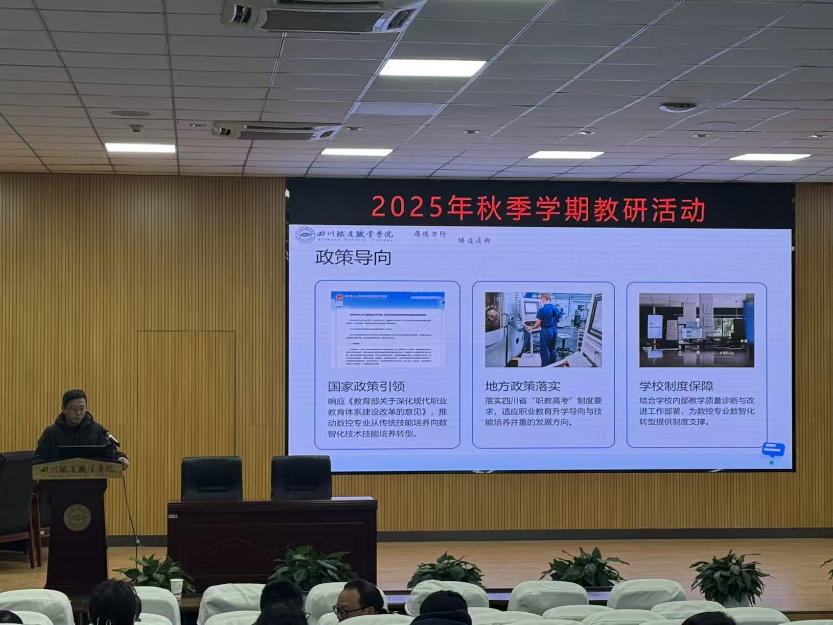 专家高位引领,赋能教学高质量发展 1月29日,活动转入专题讲座环节,教务处特邀四位业内知名专家作深度指导。 四川建筑职业技术大学副校长、博士后许辉熙以“‘五金’建设”为抓手,系统介绍了该校在教材建设方面的特色举措与显著成效,深刻阐释了高质量教材在人才培养体系中的核心支撑作用;成都航空职业技术大学马超教授以《高技能人才集群培养计划的样板数字教材开发与实践——以大飞机数智化装配为例》为题,紧密结合产业前沿,生动呈现了数字教材从理念到落地的完整路径,提供了极具参考价值的行业范例;高等教育出版社李永主任聚焦“新双高”建设背景,深入解读国家政策导向,系统分析课程体系优化与教材创新面临的新形势、新任务,并提出切实可行的实施路径;高等教育出版社张妩熙则围绕“云创平台”的应用,详细讲解数字教学资源的内容创作工具、编写规范及典型应用场景,切实提升教师数字化教学资源开发能力。