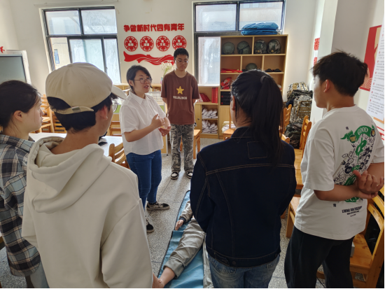 在演示环节,郑丹利用假人,分步骤展示了心肺复苏的正确操作,包括按压位置、频率、深度以及人工呼吸的规范动作。随后,依次指导学生们利用假人进行心肺复苏实操练习,在实操过程中,同学们认真学习,积极参与,通过即时纠错与反复训练,切实掌握了急救技能的要领。