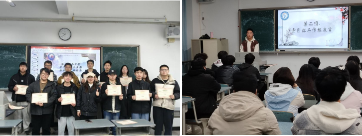首先,指导教师崔岳发表讲话。她指出牵引班的目标和期待,希望学员们珍惜学习机会,全身心投入,努力提升自己。其次,优秀讲师代表车冉渝上台发言。他对上学期的课程情况进行了总结,并向学员们介绍了本学期课程安排和教学计划。随后,优秀学员代表刘冰艳也上台发言。她表示将严格遵守牵引班的各项规章制度,以饱满的热情和积极的态度投入学习,努力提高自身能力。期间,牵引班工作组代表李俊函也对上学期的工作进行了总结。并对这学期的工作进行了规划,希望新的学期为牵引班带来新的活力。最后,在颁奖环节,指导教师崔岳为上学期表现优异的同学和工作组成员颁发了奖状,并给予了表扬与鼓励。
