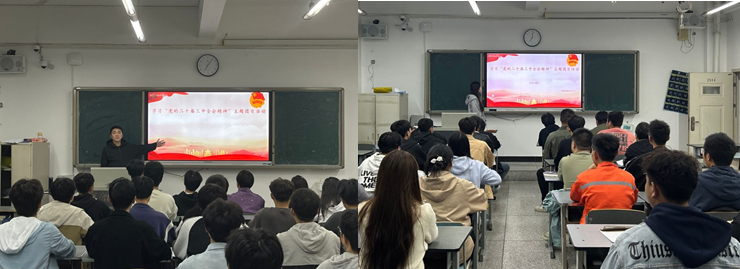 10月10日-12日,我院开展“党的二十届三中全会精神宣讲进团支部”活动,由学生会主席团、2024级领航学长组成的青年宣讲团深入24级新生班级组织宣讲党的二十届三中全会精神。宣讲团成员用青年话语传播党的声音,重点结合进一步全面深化改革的指导思想、总目标、重大原则,以及《决定》中所指出的重点部署未来五年的重大改革举措展开宣讲,并通过专题学习、交流研讨等方式引领同学们深刻认识到党的二十届三中全会精神是新时代青年成长的行动指南,自觉为全面建设社会主义现代化国家、全面推进中华民族伟大复兴贡献青春力量。