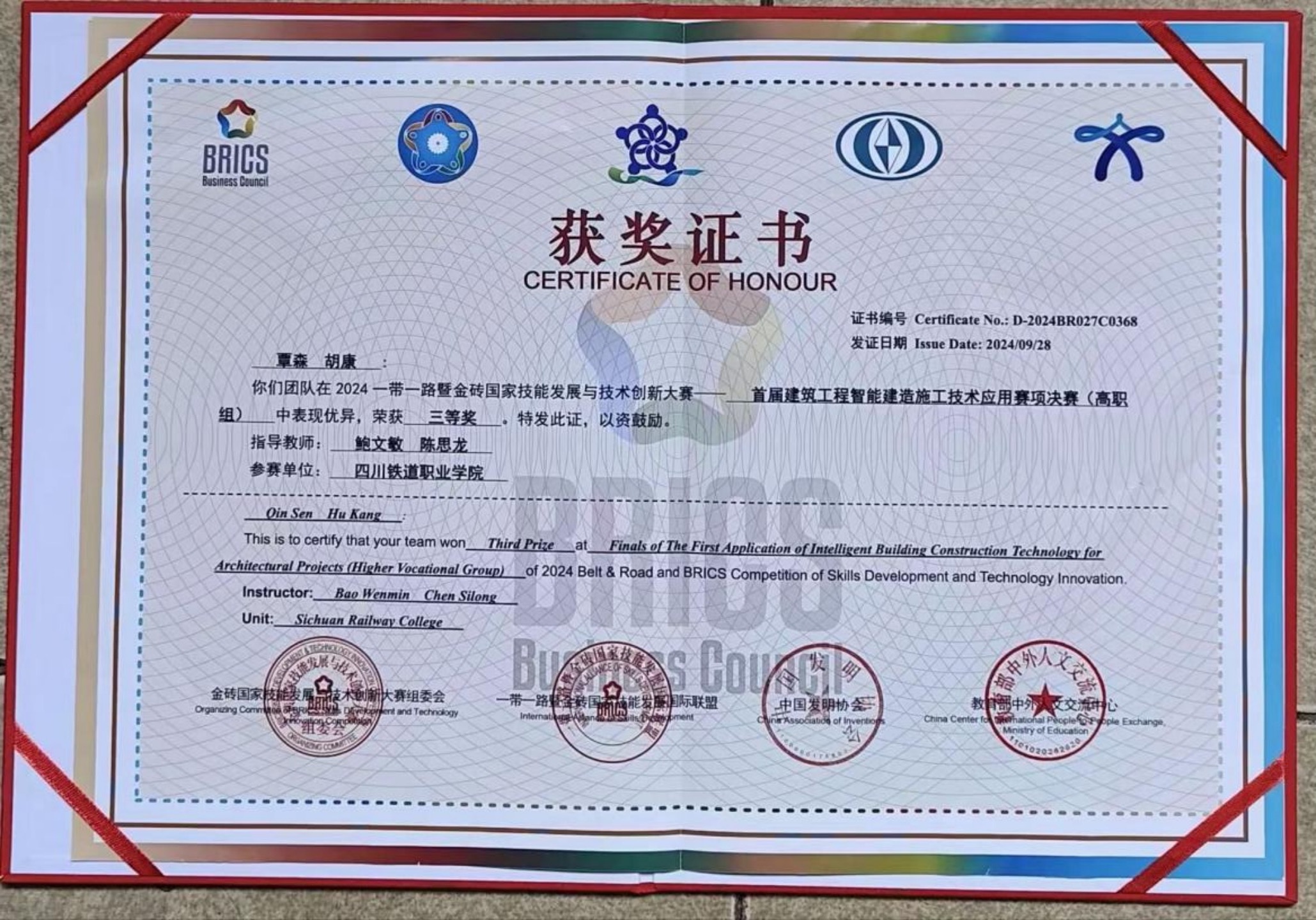 2024年9月26至28日,2024一带一路暨金砖国家技能发展与技术创新大赛首届建筑工程智能建造施工技术应用赛项(BRICS-ST-027)全国总决赛在浙江杭州举行。此次全国总决赛汇聚了来自全国超过200所院校的282支精英队伍,共同竞技。