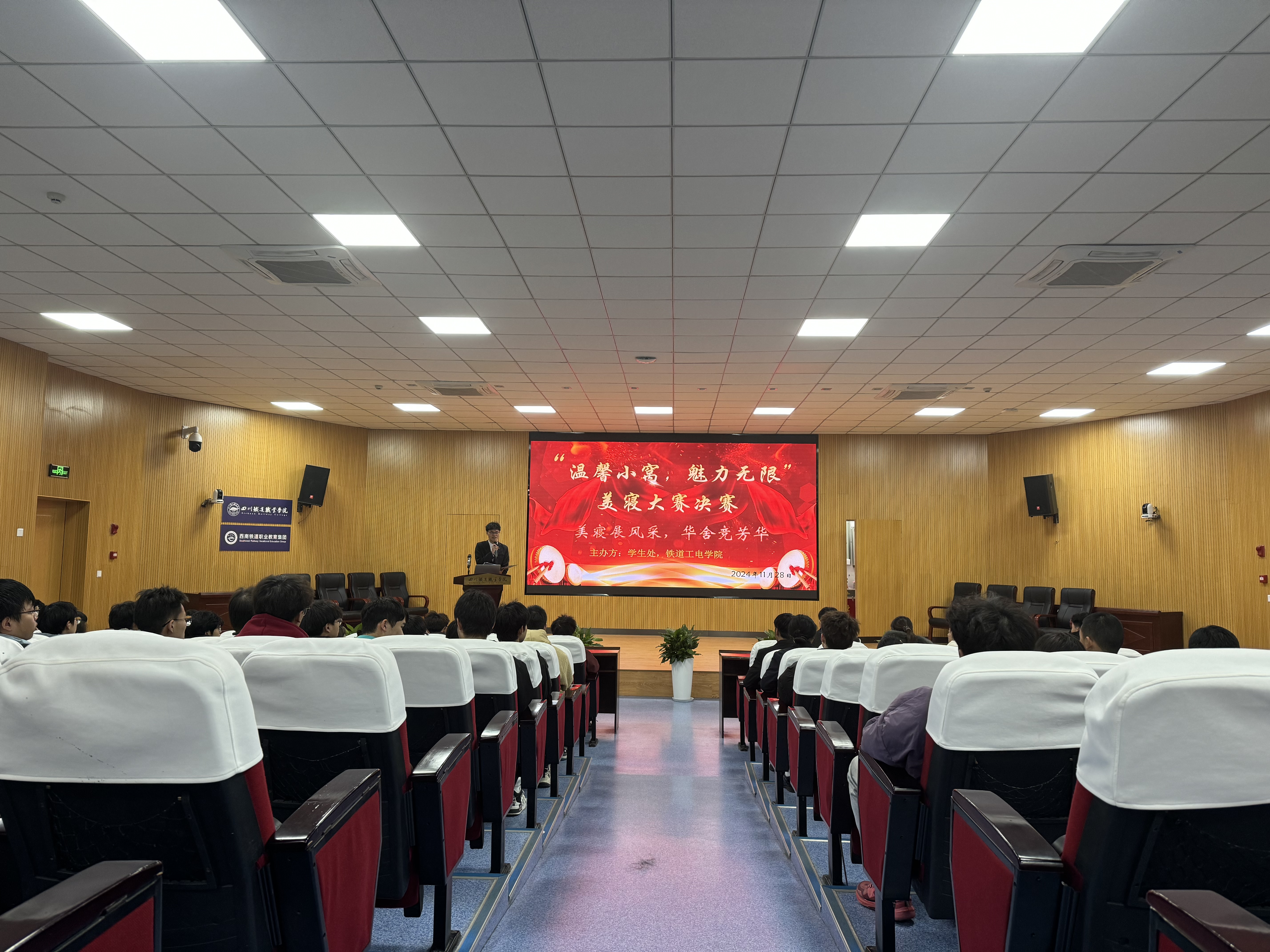 11月28日,铁道工电学院与学生处联合举办的第七届寝室文化节美寝大赛在学术报告厅成功举办。此次大赛旨在营造温馨和谐的宿舍环境,提升同学们的生活品质与审美能力。此次比赛吸引了众多寝室积极参与,共有63个寝室、300余名同学报名参赛,充分展示了学院学生对美好生活的追求与热爱。