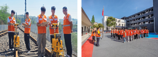 自2025年4月9日起,铁道工电学院高速铁路综合维修、铁道工程技术专业190余名学生奔赴成昆线吴场站开放型产教融合实践中心,开启为期三周的实践学习征程。4月22日,在实践中心内,一场沉浸式现场示范教学火热开展,铁道工电学院“铁小川”志愿服务团队踊跃参与,在学与践的交融中开启成长新篇。在实践中心,“铁小川”们全身心投入学习。他们穿梭于各个实践区域,紧随现场师傅与专业教师的指导,在铁路无人机巡检、钢轨探伤等实训项目中,将课堂知识与实际操作紧密结合,快速提升专业技能,深刻领悟铁路行业的严谨与规范,展现出超强的学习能力与求知热情。