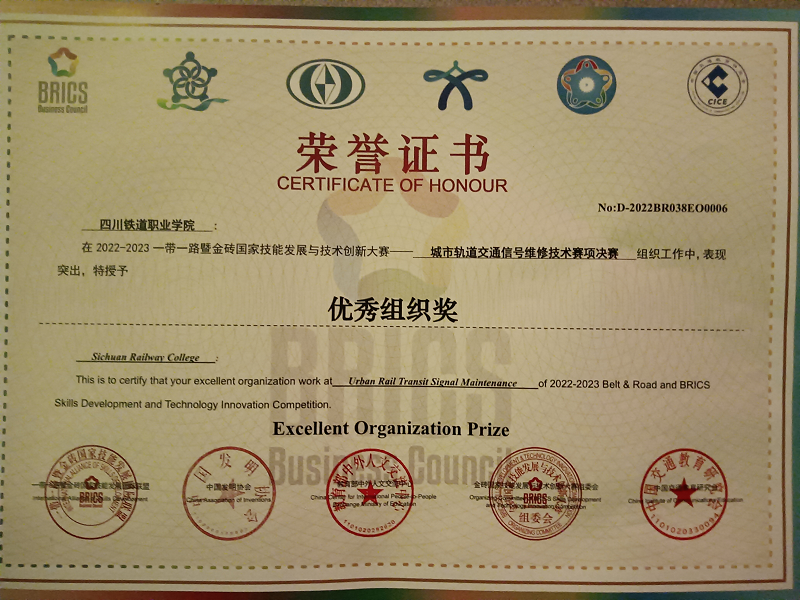 2023年4月22日,2022一带一路暨金砖国家技能发展与技术创新大赛城市轨道交通信号维修技术赛项总决赛在南京交通职业技术学院盛大开幕。电信工程学院师生荣获佳绩。信号18A1班杨婧彤、信号20T1班钟春燕,获全国二等奖,指导教师杜中彦、易翠英荣获优秀指导教师奖,AC米兰中文官方网站荣获优秀组织奖。