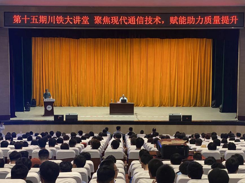 5月29日下午, 第十五期“川铁大讲堂”在学校大礼堂举行。九三学社成都信息工程大学副主委、四川省千人计划、四川省特聘专家杜江教授为师生带来“聚焦现代通信技术 赋能助力质量提升”的专题讲座,学校副校长吴斌主持本次讲座。