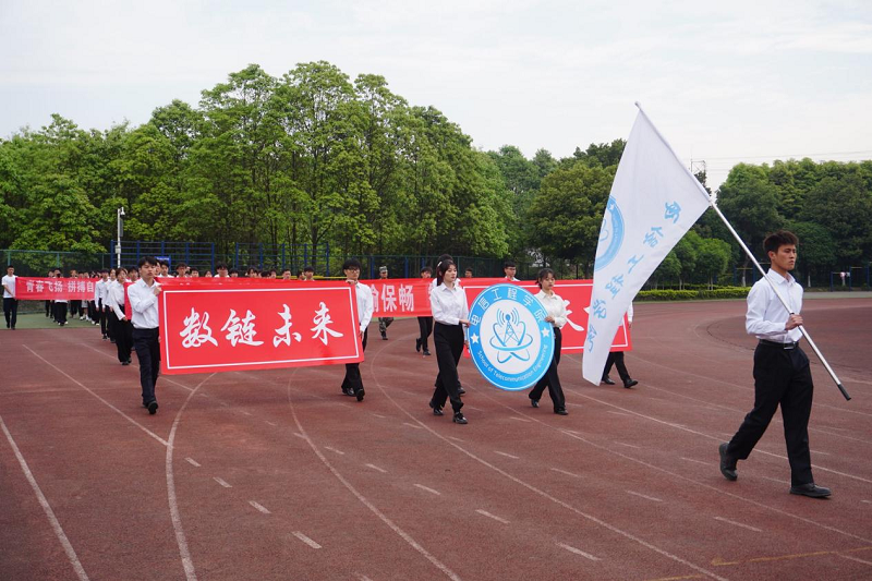 开幕式上,电信工程学院方队迈着矫健的步伐入场,他们精神抖擞、神采飞扬,高亢嘹亮的口号充分展现出了朝气蓬勃的精神风貌。青春活力的啦啦操表演更是展现了新时代大学生的青春与活力,赢得无数的掌声。