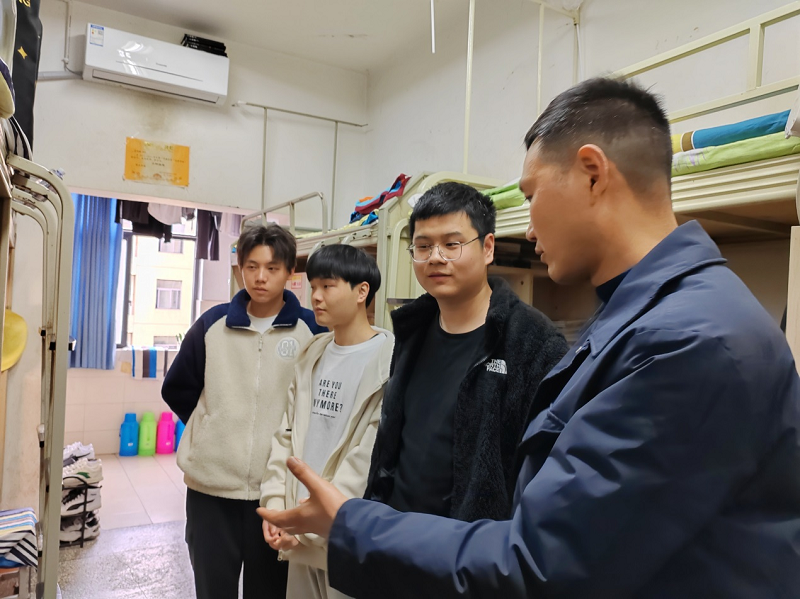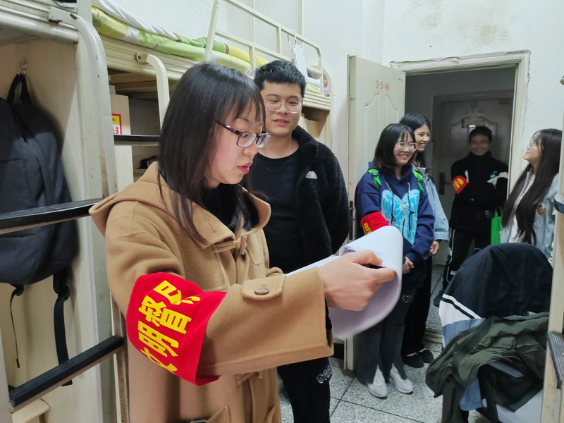 服务队深入学生宿舍,详细询问了同学们学习生活等方面情况,了解有无存在的困难和亟待解决的问题,对宿舍是否存在安全隐患,学生是否在宿舍使用违章电器、吸烟、饲养宠物、存放违禁物品等情况进行了排查。老师们叮嘱同学注意寝室公共卫生和个人卫生的打扫,做到勤打扫、常通风,预防流感等传染病,防止疾病的传播。刘奇鼓励同学们保持良好的学习生活习惯,积极申报星级文明寝室,强调要自觉遵守学校各项安全管理制度,严禁在宿舍内存放和使用违章电器,规范使用电源,人走断电,防网络诈骗、防火防盗。经检查,大部分学生宿舍的安全及卫生状况良好。针对个别卫生较差和人走充电器未取下的宿舍,分类记录,及时整改。