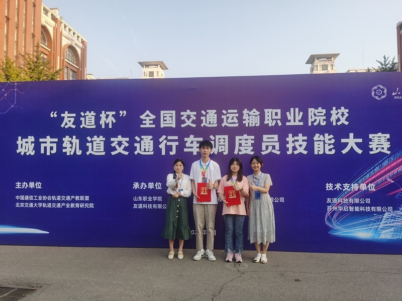 6月12日,“友道杯”全国交通运输职业学院城市轨道交通行车调度员技能大赛全国总决赛于山东职业学院圆满闭幕。米兰官网交通运营管理专业学生黄超、徐彩怡组成的代表队荣获国家级三等奖。