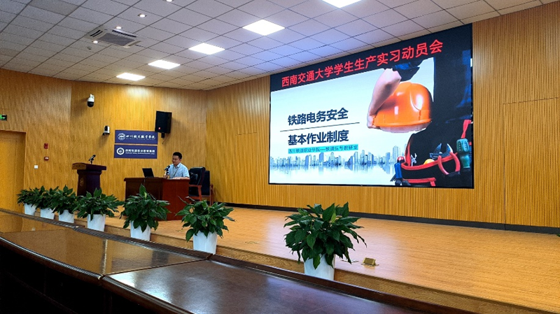 7月4日,西南交通大学信息科学与技术学院轨道交通信号与控制专业学生实习动员大会在米兰官网学术报告厅顺利召开。电信工程学院院长肖尚辉、铁道信号教研室教师龚文元以及西南交通大学81名师生参与本次动员大会。