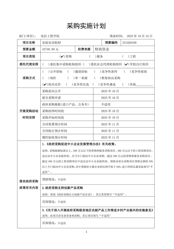 电信工程学院2025年采购实施计划表
