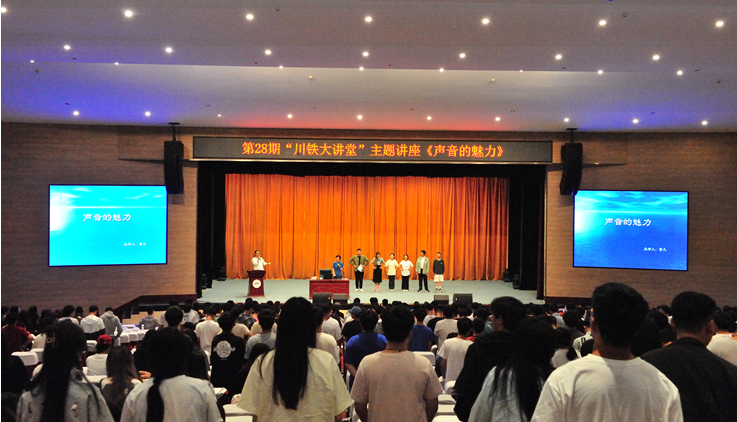 6月3日,学校“川铁大讲堂”特邀四川人民艺术剧院院长、国家一级演员、四川省戏剧家协会副主席,中国话剧“金狮奖”、公安政治部“优秀导演奖”、四川省“五个一工程奖”获得者董凡女士来米兰官网作“声音的魅力”主题讲座,四川人民艺术剧院国家二级演员谢黎明老师随同助讲。学校近900名师生现场聆听。