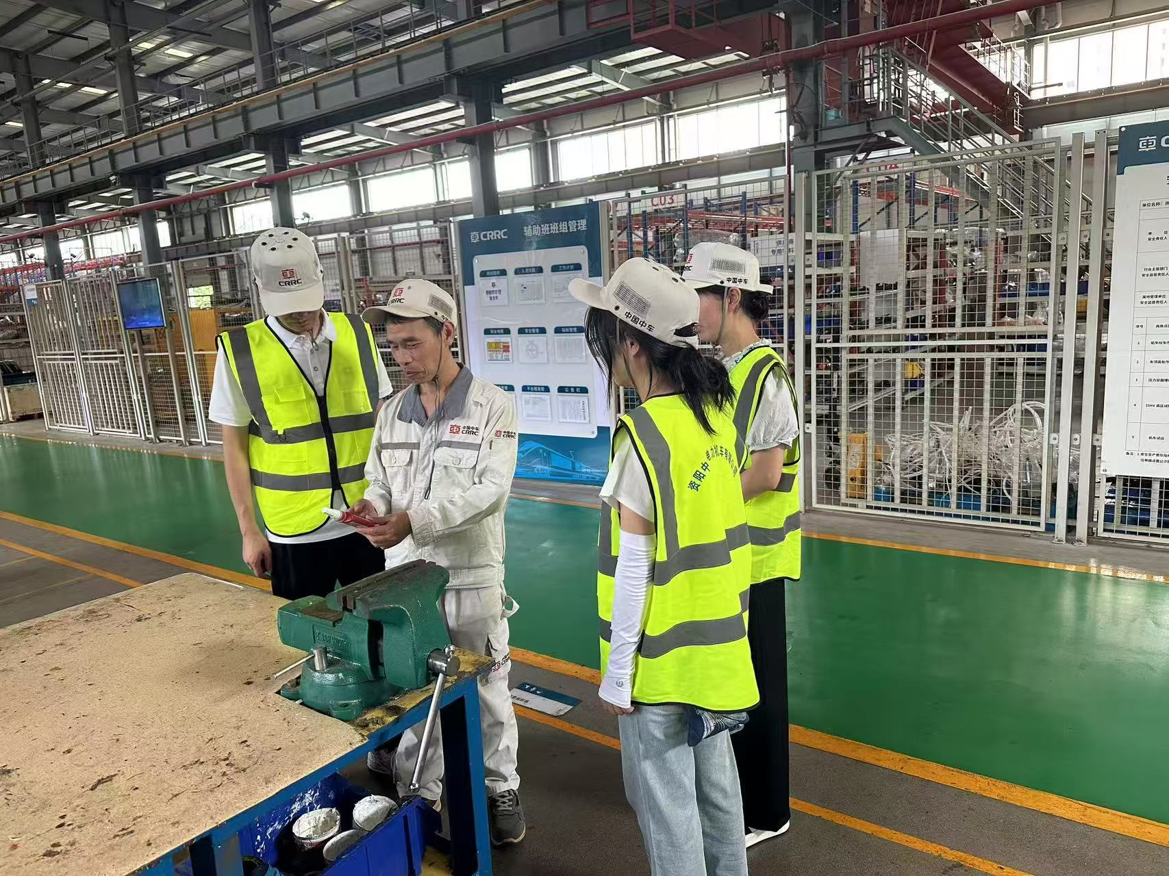 本次学习期间,公司首席调试师、技能大师唐勇围绕安全生产规范、HXDIC机车总体结构、机车的组装及调试流程开展培训,带领大家深入车间,对照车身部件逐一讲解,聚焦模块化装车的实操细节。通过现场学习,老师们真切地感受到数学逻辑无处不在,企业一线“用数字守安全、用公式定流程”的实操经验,刷新了老师们对行业技术动态中数学应用场景的认识。