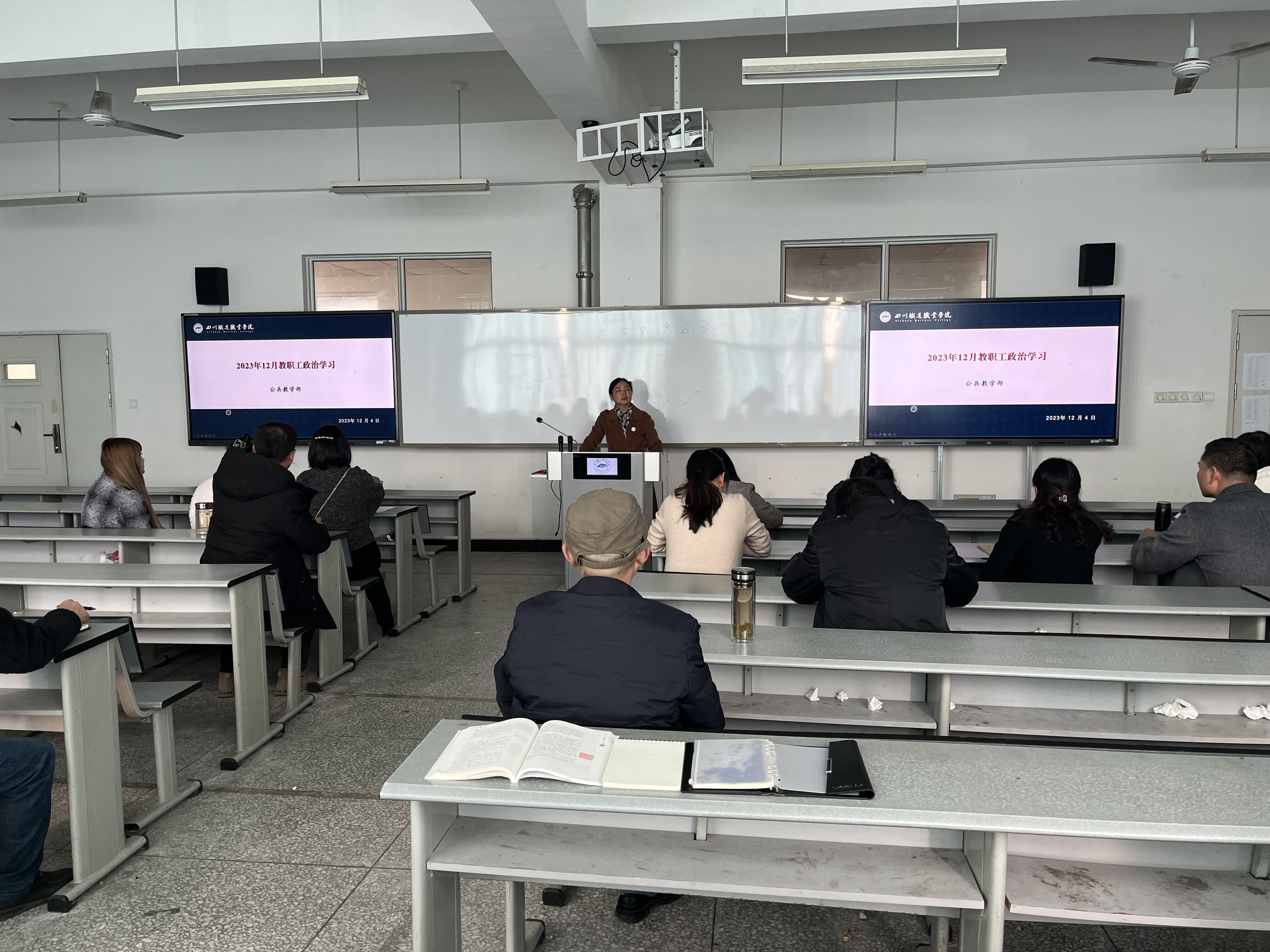 12月4日下午,公共教学部在2521教室开展了12月教职工政治学习活动,重点学习习近平总书记在二十届中央政治局第六次集体学习时的讲话精神和来川视察重要指示精神。本次会议由党总支书记翁静主持,全体教师参加,学校纪委副书记吴东到会一起学习。