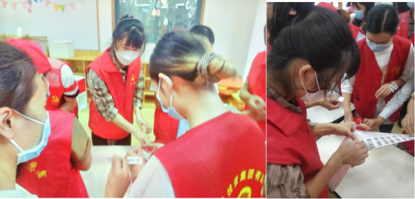 “疫情防控,人人有责”。公教部党支部党员教师做好核酸检测等防控措施,积极参与社区疫情防控志愿活动。公教部党支部书记刘媛同志率先投身于社区疫情防控志愿活动中,加入社区防疫志愿者队伍,主动承担通行证派发等任务,解决社区居民最基本通行问题,服从社区任务安排,协助完成各项任务。入党积极分子陈羽同志积极完成社区核酸检测的秩序维护、上门通知等任务,从而避免了居民扎推聚集的情况,缓解了核酸检测拥堵的压力。
