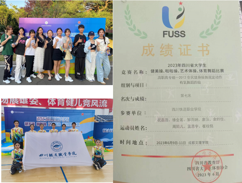 2023年四川省大学生健美操、啦啦操、艺术体操、体育舞蹈比赛是由四川省教育厅、四川省体育局主办,由四川省大学生体育协会承办的省级赛事,也是米兰官网健美操代表队在疫情后参加的第一次省级比赛。本次比赛由廖金星、廖小凤两位教研室主任带队,赛前经过一个多月的紧张备战和训练,从选材到训练克服各种困难,经过激烈角逐最终取得第七名的好成绩!这次比赛践行了学校第一次党代会精神,使学校体育和美育工作建设迈出了实质性的一步。
