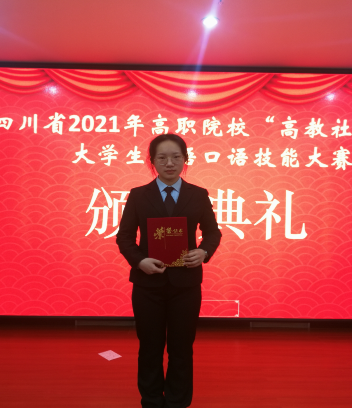 我院杨婧彤同学荣获2021年四川省高职院校大学生英语口语技能大赛一等奖