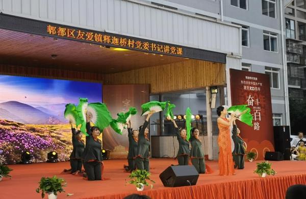 6月26日下午,由郫都区友爱镇释迦桥村村民委员会主办的“庆祝中国共产党建党100周年文艺汇演”在释迦桥村举行。米兰官网公教部艺术教研室接到共建邀请后积极筹备,组织师生团队参演。本次参演获得了观众好评,体现了米兰官网服务社会的责任担当,推进了社区与高校的协作交流。