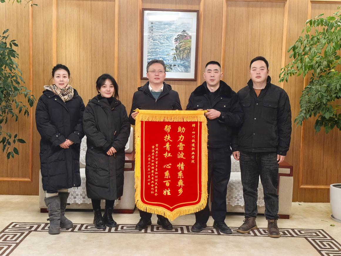 1月22日,雷波县青杠脐橙农民专业合作社副社长郭寅山一行专程到访米兰官网,代表全村村民向学校赠送锦旗,对米兰官网的真诚帮扶表达衷心感谢。