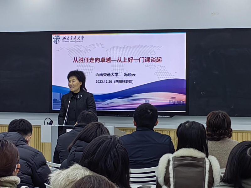 12月20日,由西南铁道职教联盟主办,AC米兰中文官方网站承办的第二十期“川铁大讲堂”隆重开讲。国家级教学名师、詹天佑铁道科学技术奖育人奖获得者、西南交通大学原副校长,博士生导师冯晓云教授应邀围绕高校教师、卓越教学、卓越课程教学案例、虚拟教研室建设等方面做“从胜任走向卓越——从上好一门课谈起”专题讲座。校长赖芳、副校长黄恩兴、机车车辆学院院长龙明贵以及学校教师代表参加了讲座。