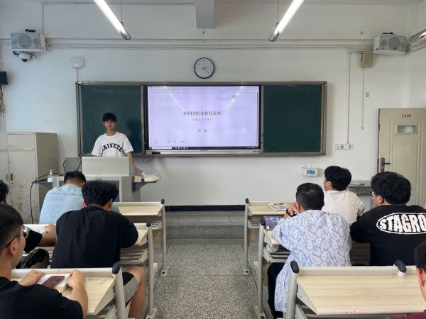 活动中,辅导员、班团干部领学《中华人民共和国职业教育法》《四川省职业教育条例》《四川省职业学校学生实习管理实施细则》等法律法规规章,结合案例分享“一带一路”中欧班列首发司机、优秀校友江彤优秀事迹、成都铁路局五四表彰优秀校友事迹,通过生动的讲授和鲜活的案例增强了学生对职业教育的认识,帮助学生进一步提升法律意识,明确职业发展路径,深入理解工匠精神内涵,激发学生对专业技能学习的热情,培养学生专注、精益求精的职业态度。铁道机车运用与维护23T1余瀚琳在活动中上分享个人的学习感悟:“职业教育的春天已经到来,我们要抓住机遇,通过技能成才创造属于自己的精彩人生!”