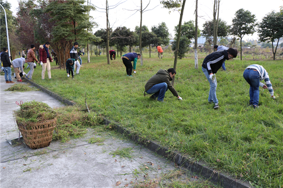 为美化校园环境,营造和谐校园,11月30日,机车车辆系组织全体学生开展校园绿化带除杂草活动。