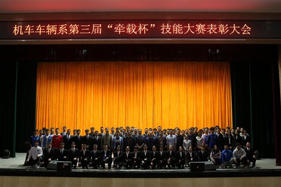 2019年10月14日,机车车辆系全体师生在学院大礼堂举行了第三届“牵载”杯技能大赛表彰大会。教务处黄恩兴处长、机车车辆系杨伦军副主任、大赛各项目负责老师以及各年级辅导员、班主任出席此次大会。