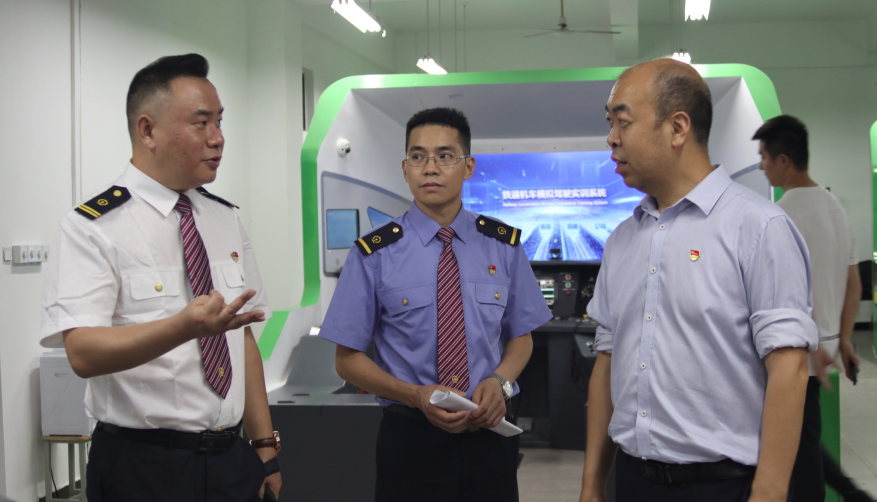 9月21日,“新时代·成铁榜样”先进事迹巡回报告团完成报告后,随即前往铁道机车车辆模拟驾驶中心参观。学校党委宣传统战部部长杨海涛、机车车辆学院铁道机车车辆制造与维护专业负责人罗林顺、实训室负责人邓勇以及辅导员团队陪同。