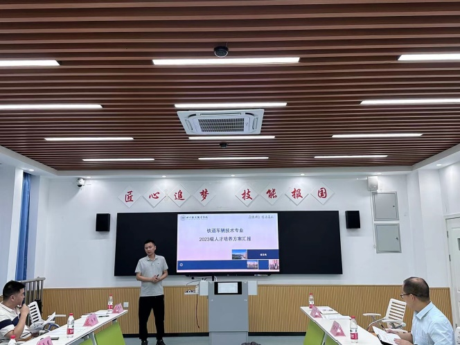 动车组检修技术专业教研室主任曹刚与铁道车辆技术专业教研室主任翁玉鸣就2023级人才培养方案、专业调研情况及专业建设现状和方案进行汇报。与会专家认真听取了报告,对人才培养方案给予充分肯定的同时,提出切实可行的修订意见。会上,校企双方一致表示将以“2+1”定向培养为契机,将职业培训内容融入教学体系,强化铁路安全技术规章、岗位作业标准和应急处理等业务知识培养,促进专业设置精准对接当前产业结构转型升级的发展需求,培养适应社会发展的高质量人才。