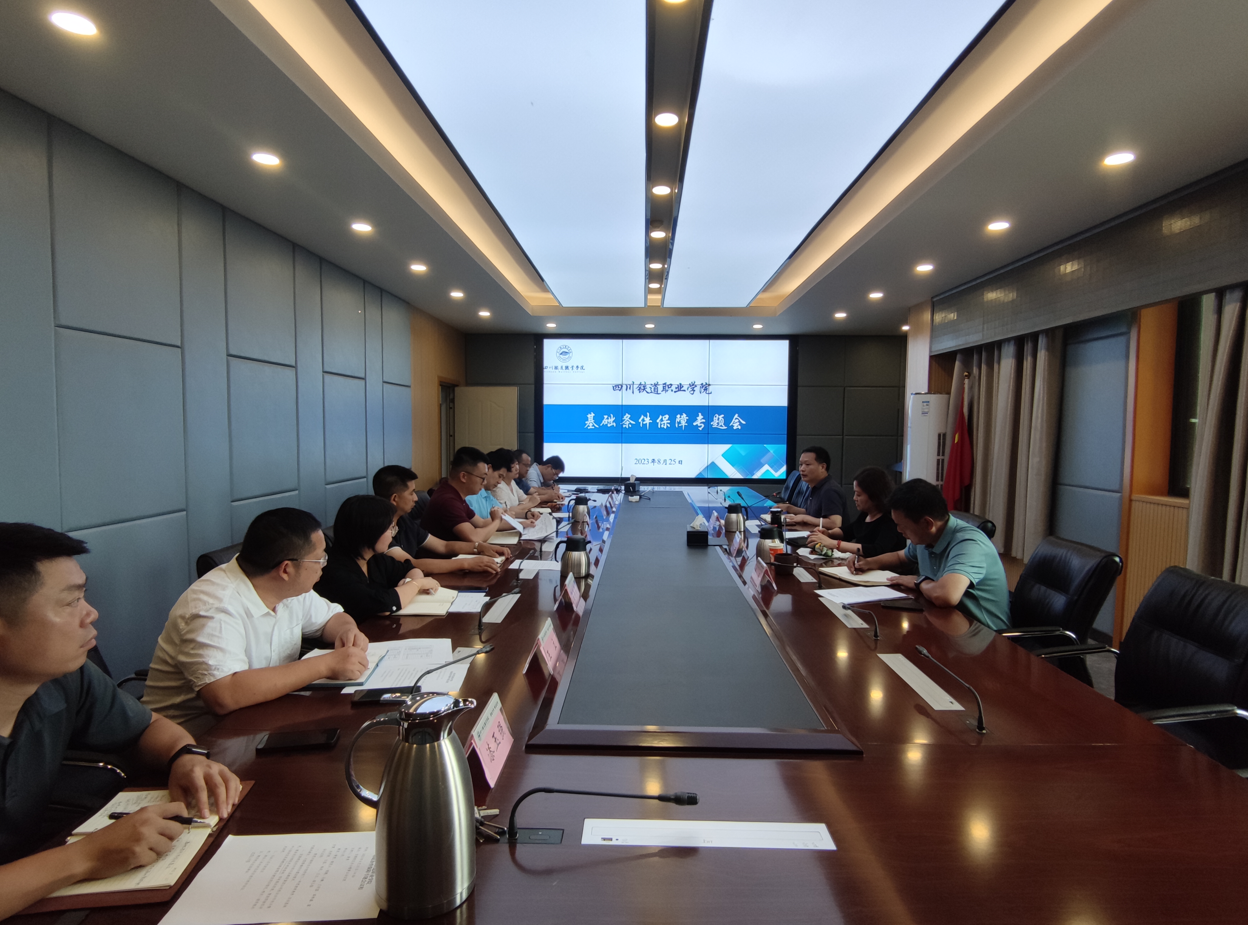 会上,黄恩兴副校长介绍了学校下一年度教育教学、实训基地对基本建设、大型修缮项目需求情况。发展规划处介绍与成都局集团公司校企合作有关情况,教务处介绍机车考培基地、四电集成改造、智能焊接实训中心等涉及双高建设配套需求建设项目情况,相关二级学院补充说明。会议就以上工作的下一步安排和注意事项进行了认真的交流研讨。