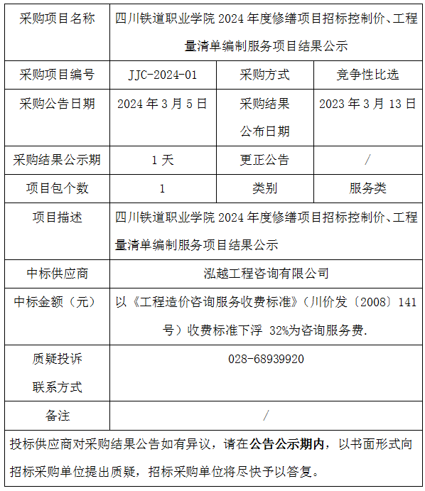 AC米兰中文官方网站2024年度修缮项目招标控制价、工程量清单编制服务项目结果公示