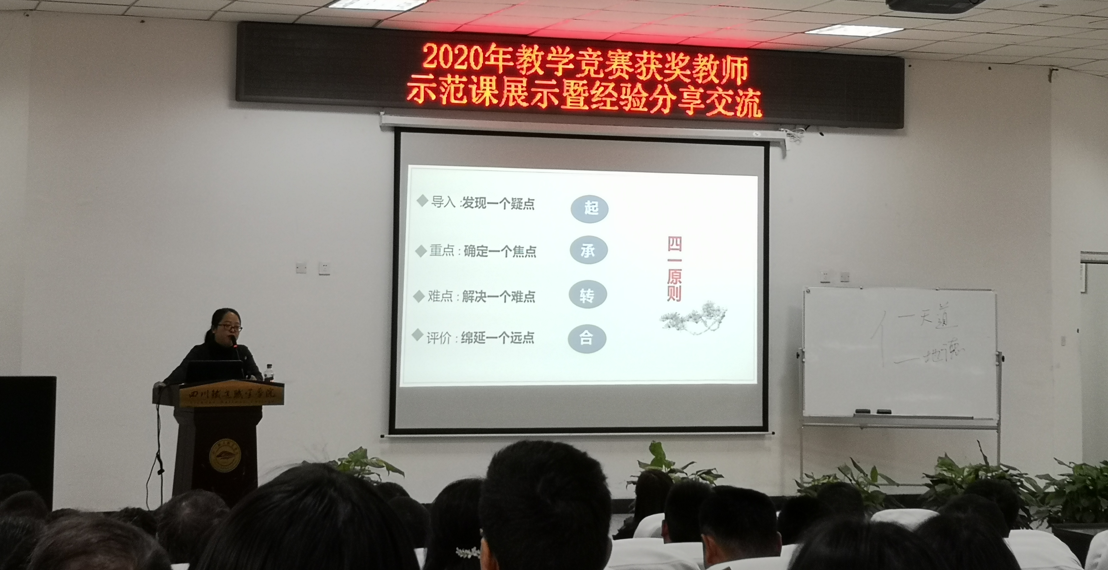 2021年4月12日下午,学院2020年教学竞赛获奖教师示范课展示暨经验分享交流活动在学术报告厅举行。教学副院长刘昊君及教学相关部门的负责人、各系(部、中心)专兼职教师和相关职能部门的管理人员参与聆听了此次分享交流。第5届四川省高校青年教师教学竞赛获奖选手张佳文、付婷婷;2020年四川省职业院校教师教学能力大赛获奖团队:张佳文团队、杨凤团队、刘春兰团队分别进行了示范课展示和经验分享交流。
