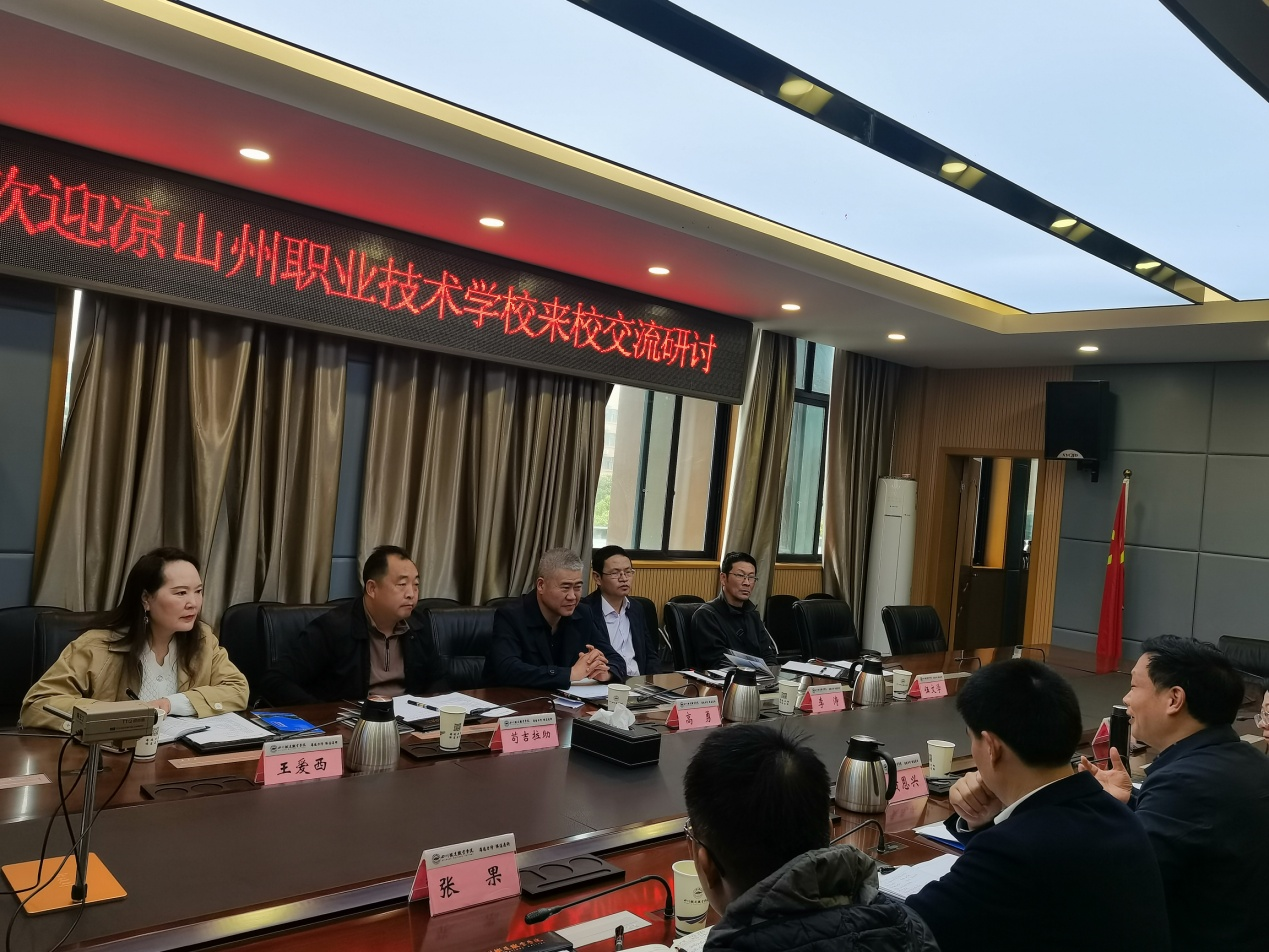 会上,首先副校长黄恩兴对凉山州职业技术学校一行表示欢迎,简要介绍学校基本情况、学校中高职衔接五年贯通培养(五年制高职)人才培养情况;其次凉山州职业技术学校党委书记高勇介绍本校中高职衔接五年贯通培养(五年制高职)联合办学需求概况。主宾双方就人才培养方案如何优化、两校之间如何做到师生互动交流、教学教研通过远程同步优化、课程如何设置、专业的方向性指明确定等进行交流研讨。