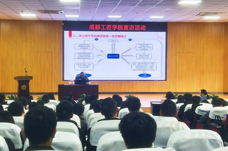 现场学习气氛热烈。罗晨针对基于成都工匠学院的“工匠经纪人”身份定位及作用发挥,层层剖析,用案例讲概念,用视频讲体系,用图表讲构架,讲解生动清晰,帮助师生对于“工匠经纪人”身份正确认识、准确了解、快速投入。