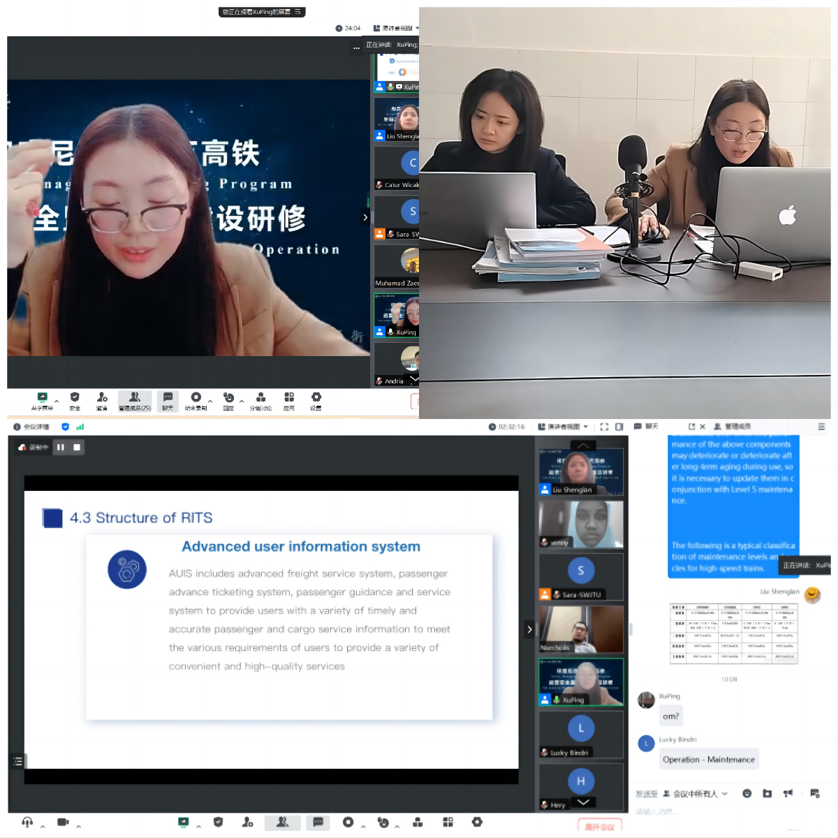 12月7日上午,米兰官网教师刘盛蓝、徐萍受邀为西南交大主办的印度尼西亚雅万高铁运营安全监督能力建设研修班讲授《高铁运营安全管理》课程。此次研修班主要针对印度尼西亚交通部铁路局、铁路局安全处、印度尼西亚铁路理工学院的官员开展,旨在提升印尼雅万高铁运营安全及管理效率,加强中印尼两国在高速铁路领域的交流与合作。